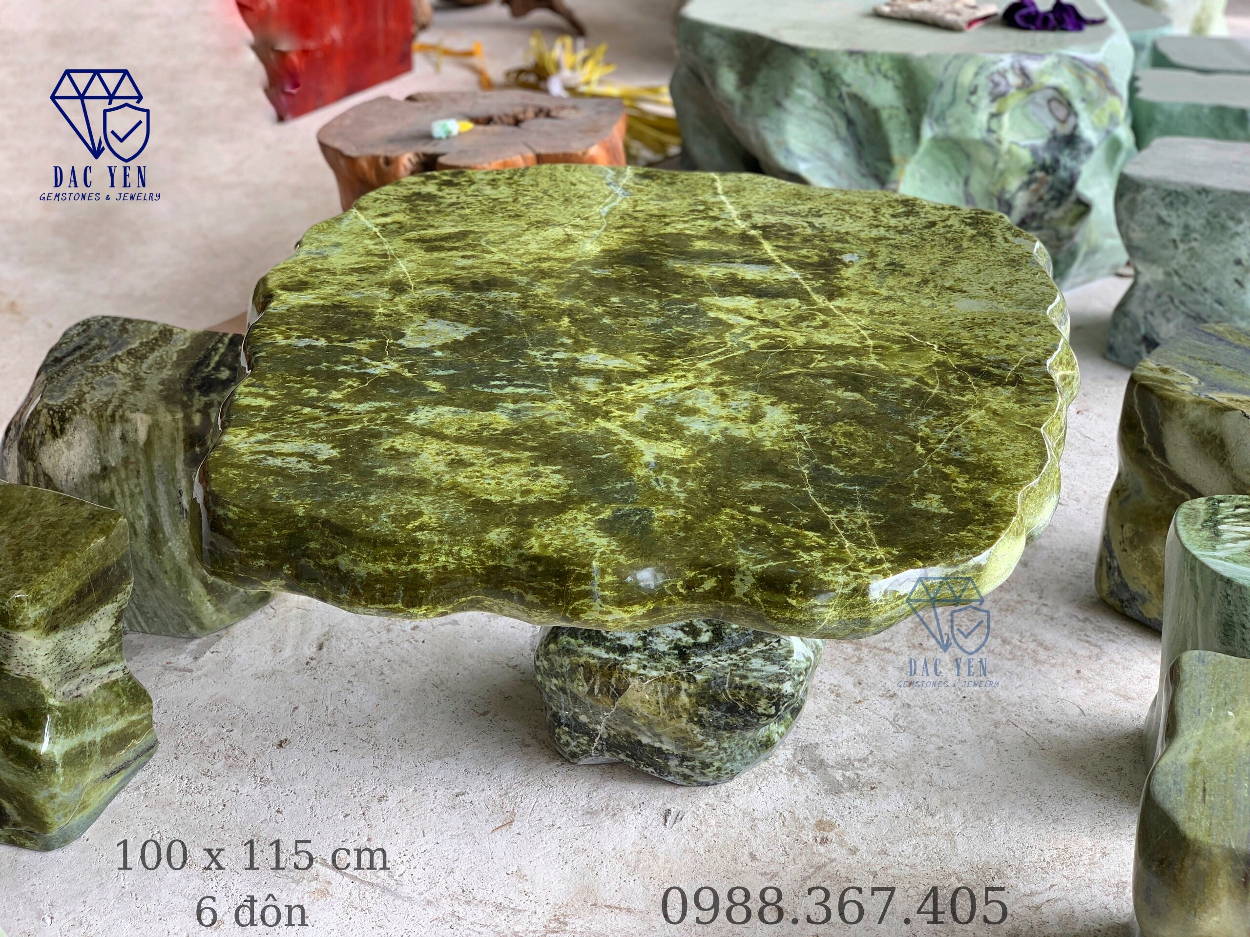 Bộ bàn ghế đá tự nhiên serpentine xanh trưng bày tại showroom