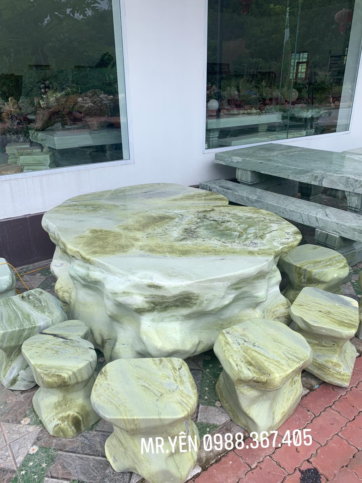 Bộ bàn ghế đá tự nhiên xanh vân cốm