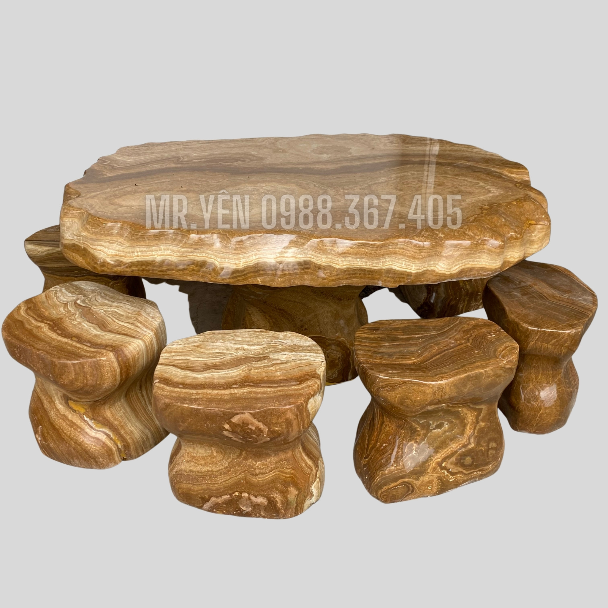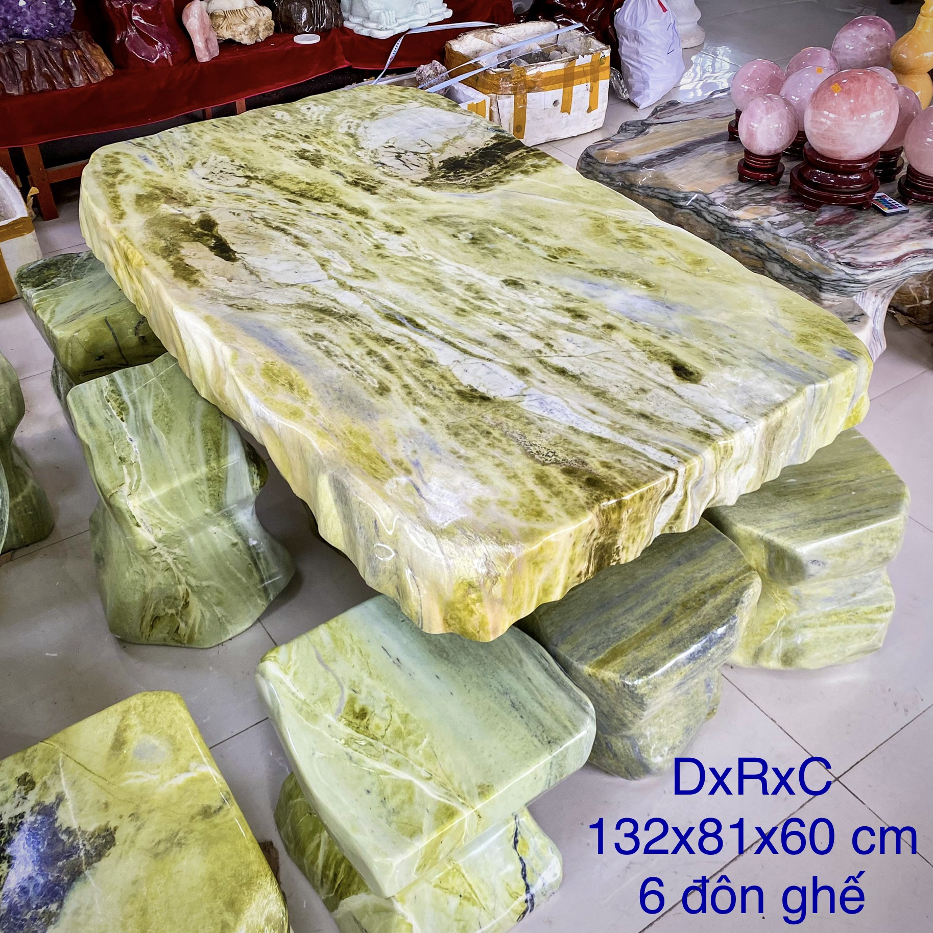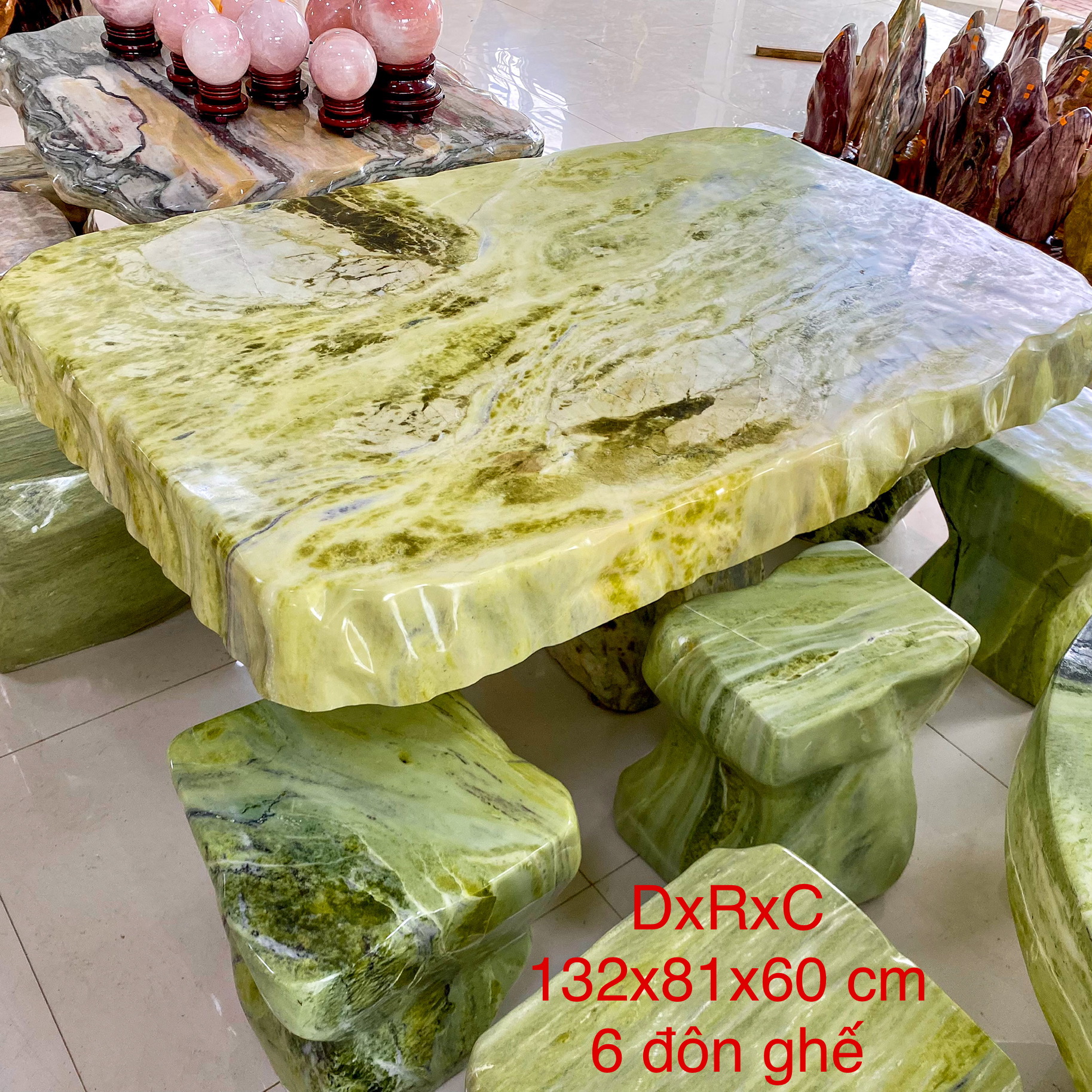 Bộ bàn ghế đá ngọc tự nhiên - kt 131 x 82 x 60 cm - 6 đôn ghế