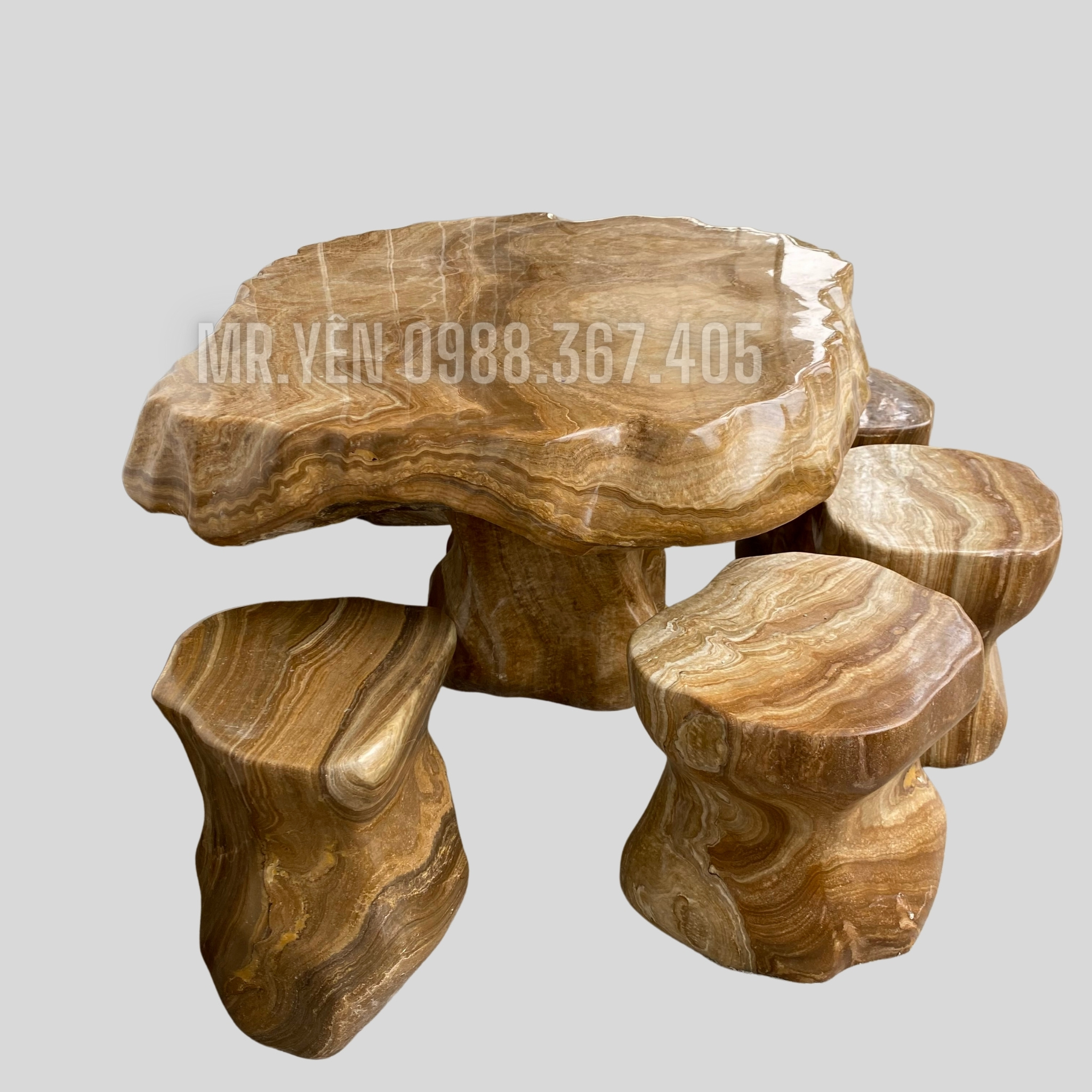 5. Bộ bàn ghế đá ngọc vân gỗ tự nhiên - kt 128 x 94 cm