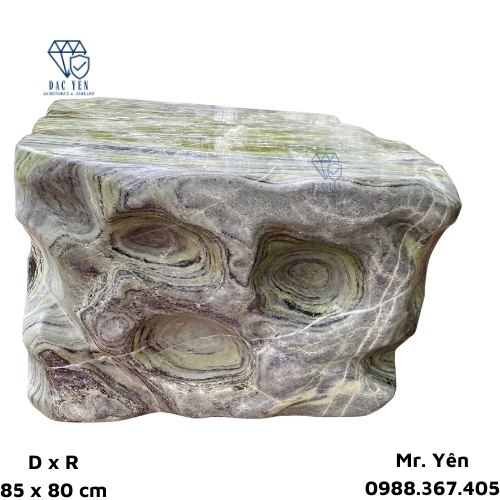 Bộ bàn ghế đá tự nhiên có chân kê, vân đá xanh độc lạ