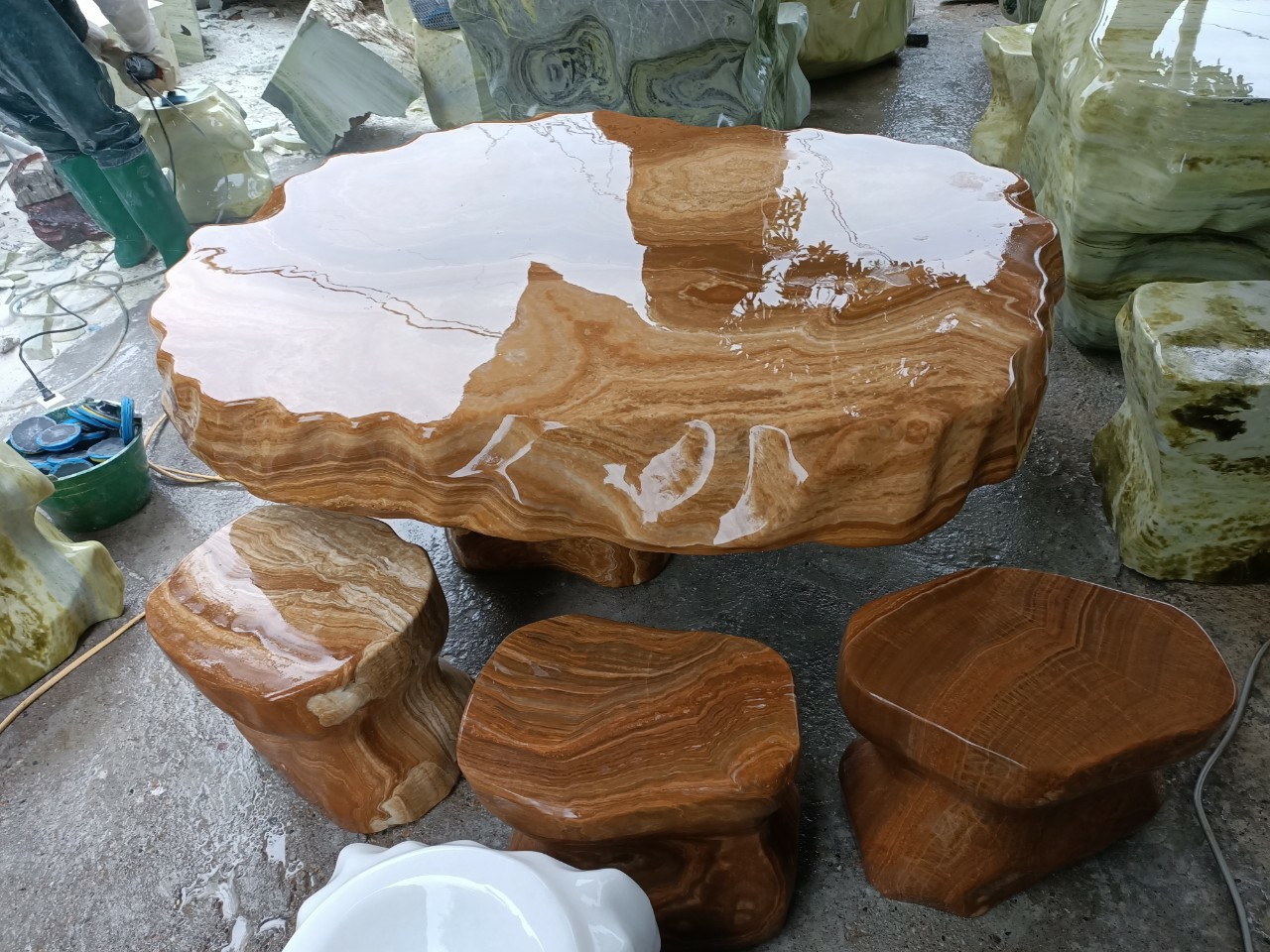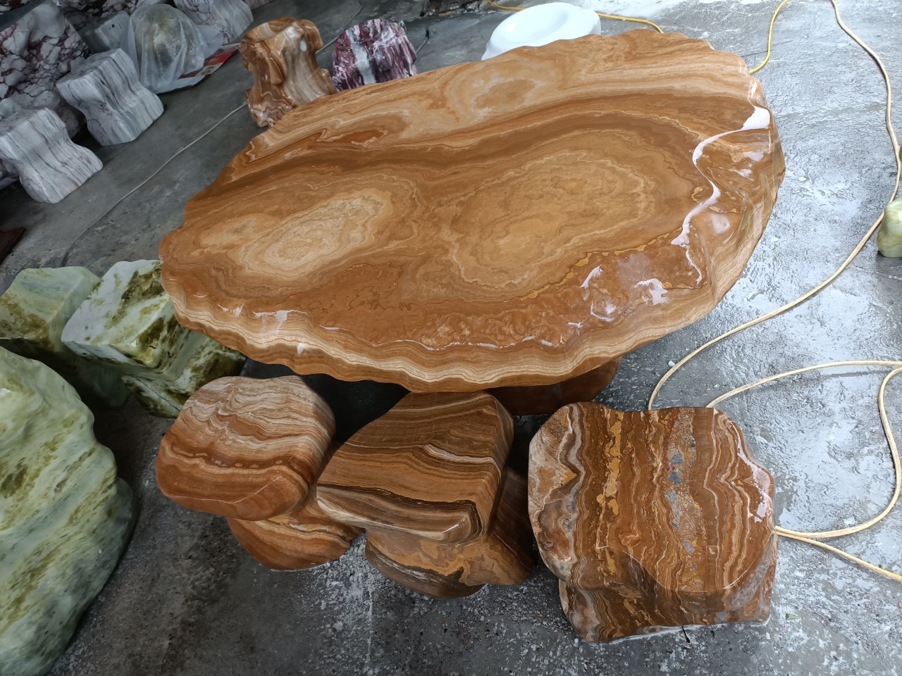 Bộ bàn ghế đá ngọc vân gỗ tự nhiên - kt 128 x 94 cm
