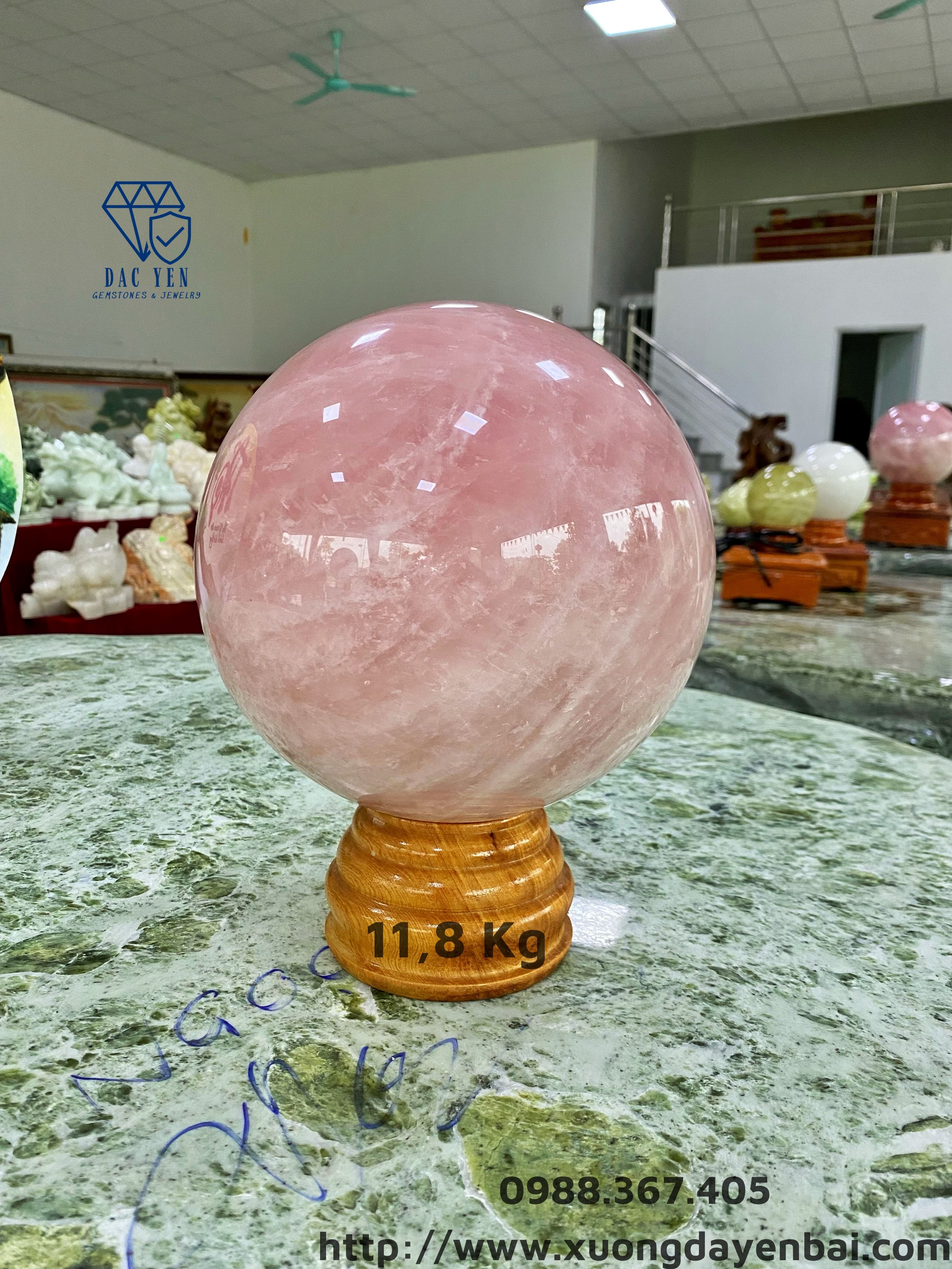 Quả cầu phong thủy thạch anh hồng, trọng lượng 11,8 Kg.