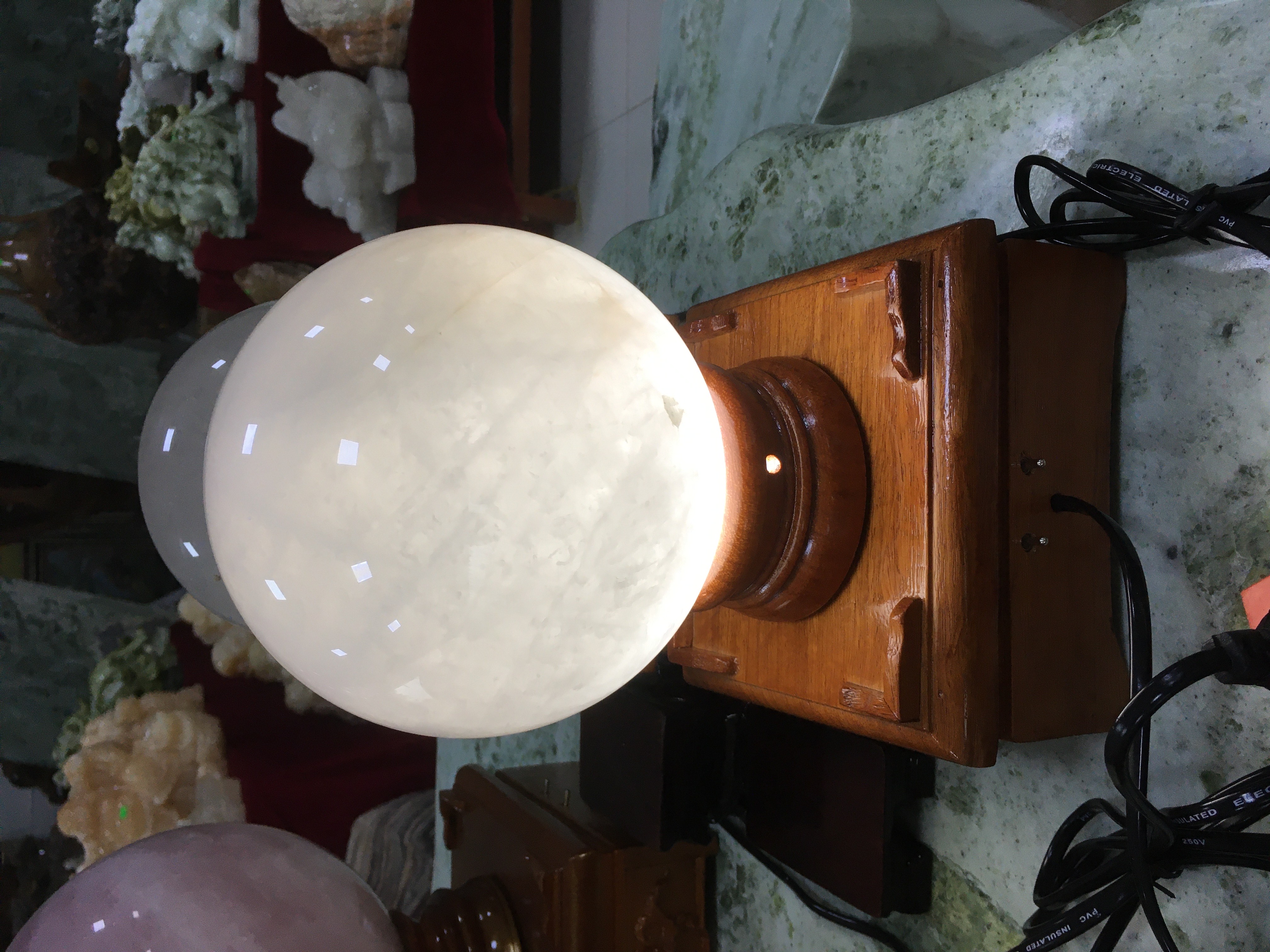 Cầu thạch anh trắng trong: là khối cầu màu trắng, bên trong có chứa nhiều tạp chất, khi kết hợp với ánh sáng sẽ có hiệu ứng LẤP LÁNH đẹp mắt.