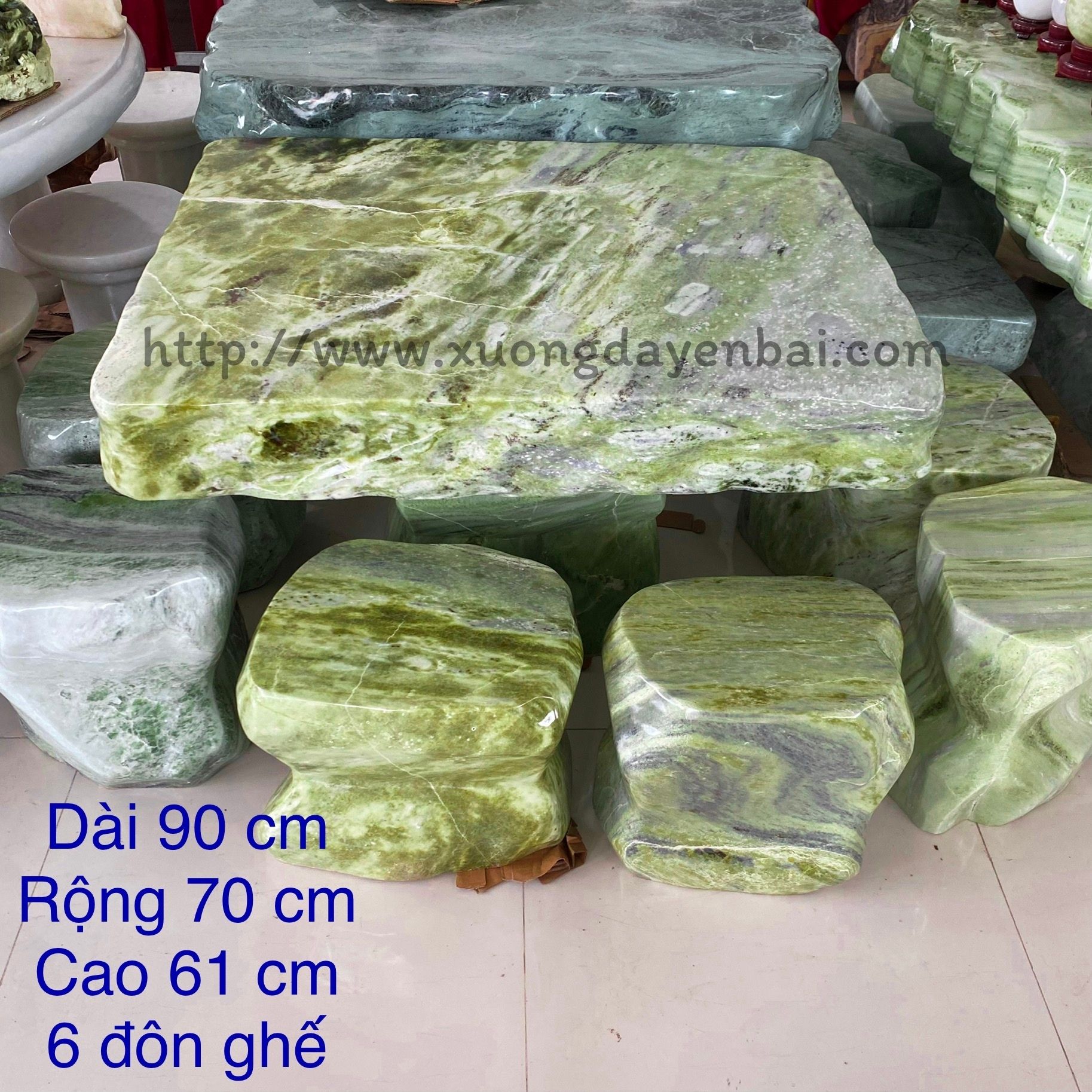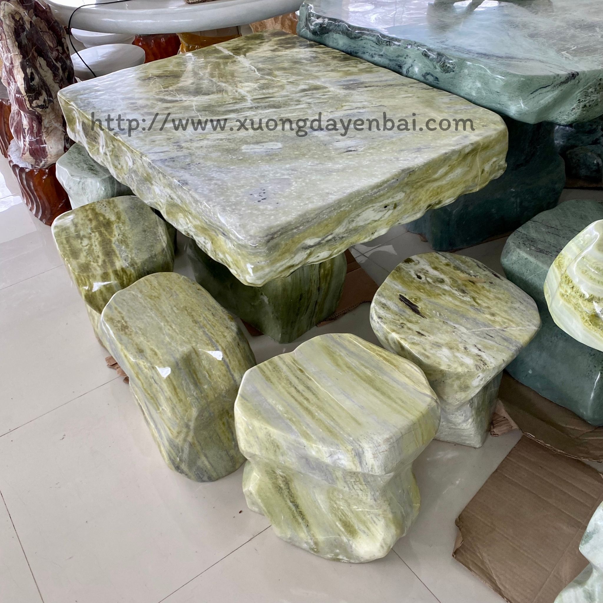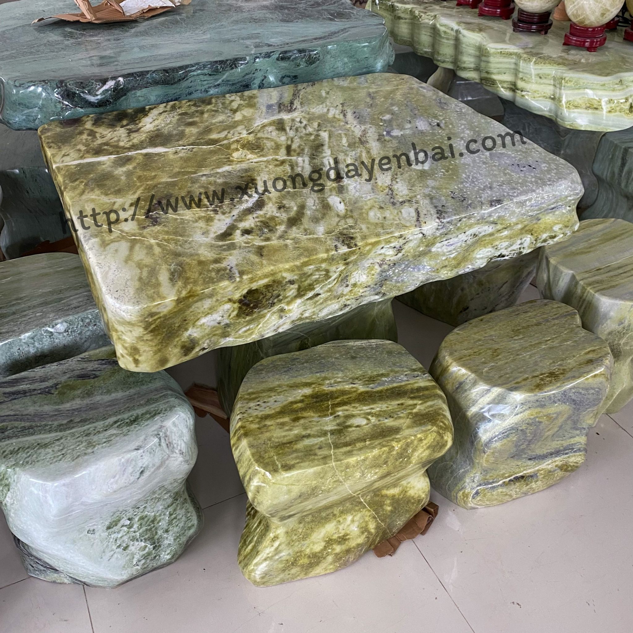 Hiện bộ bàn ghế đá ngọc tự nhiên chân kê đang được tập kết tại địa chỉ: SHOWROOM THẾ GIỚI ĐÁ QUÝ ĐÁ PHONG THỦY - ĐƯỜNG ÂU CƠ - TP. YÊN BÁI.