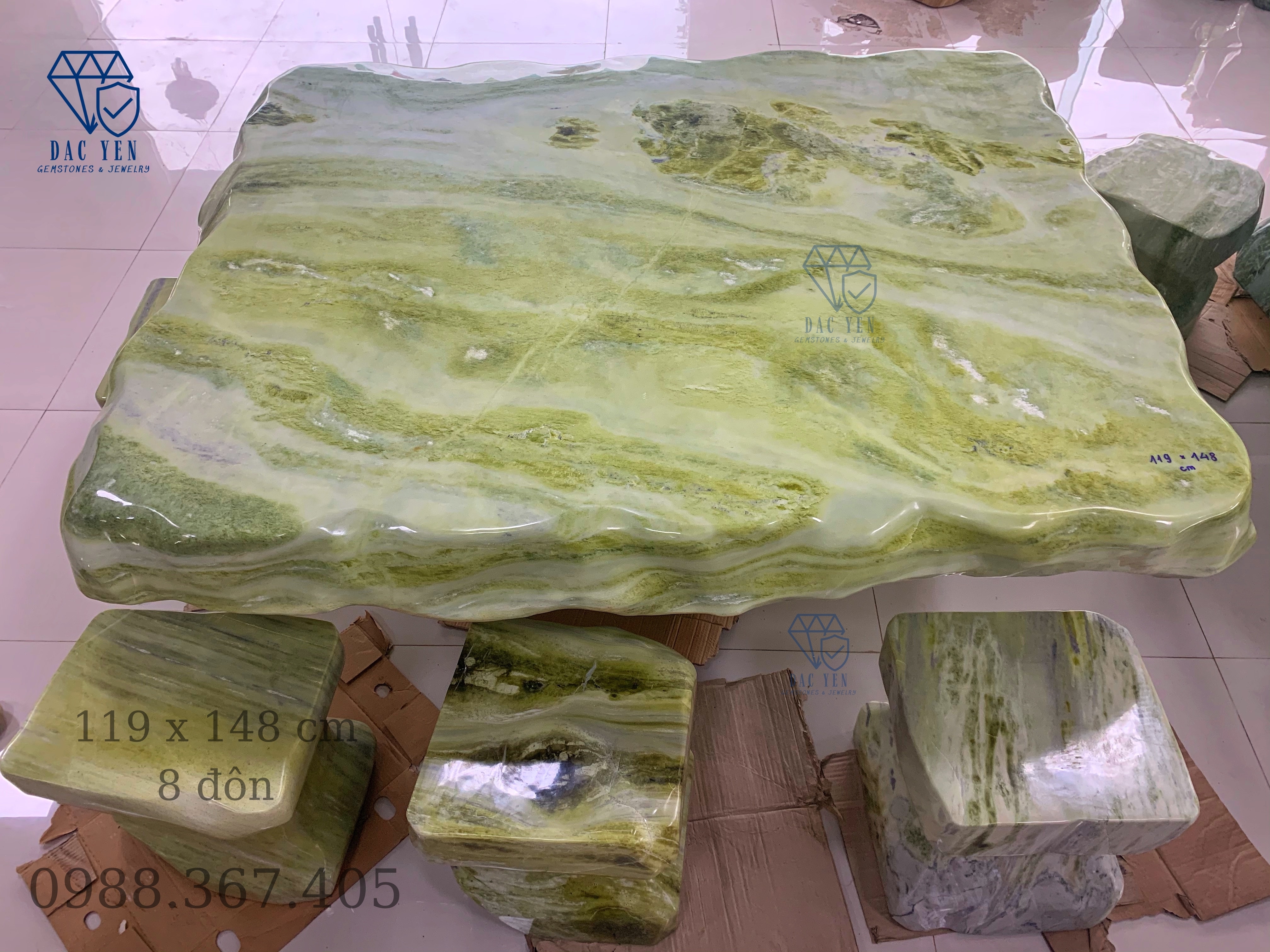 Đối với bộ bàn ghế đá tự nhiên serpentine xanh kích thước 119 x 148 cm, 8 đôn đi kèm sẽ có giá từ 30 triệu đồng trở lên.