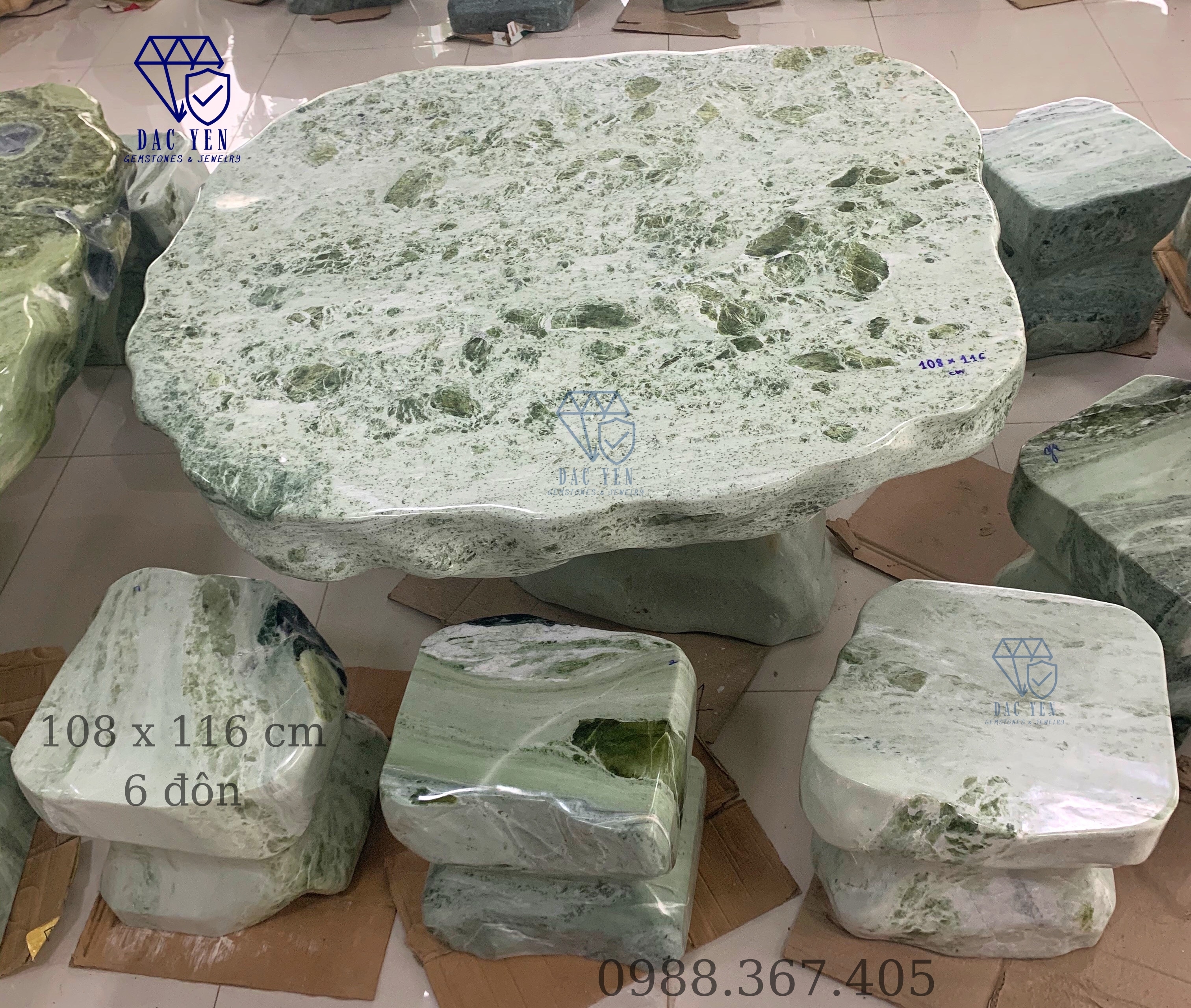 Bộ bàn ghế đá tự nhiên xanh kèm 6 đôn