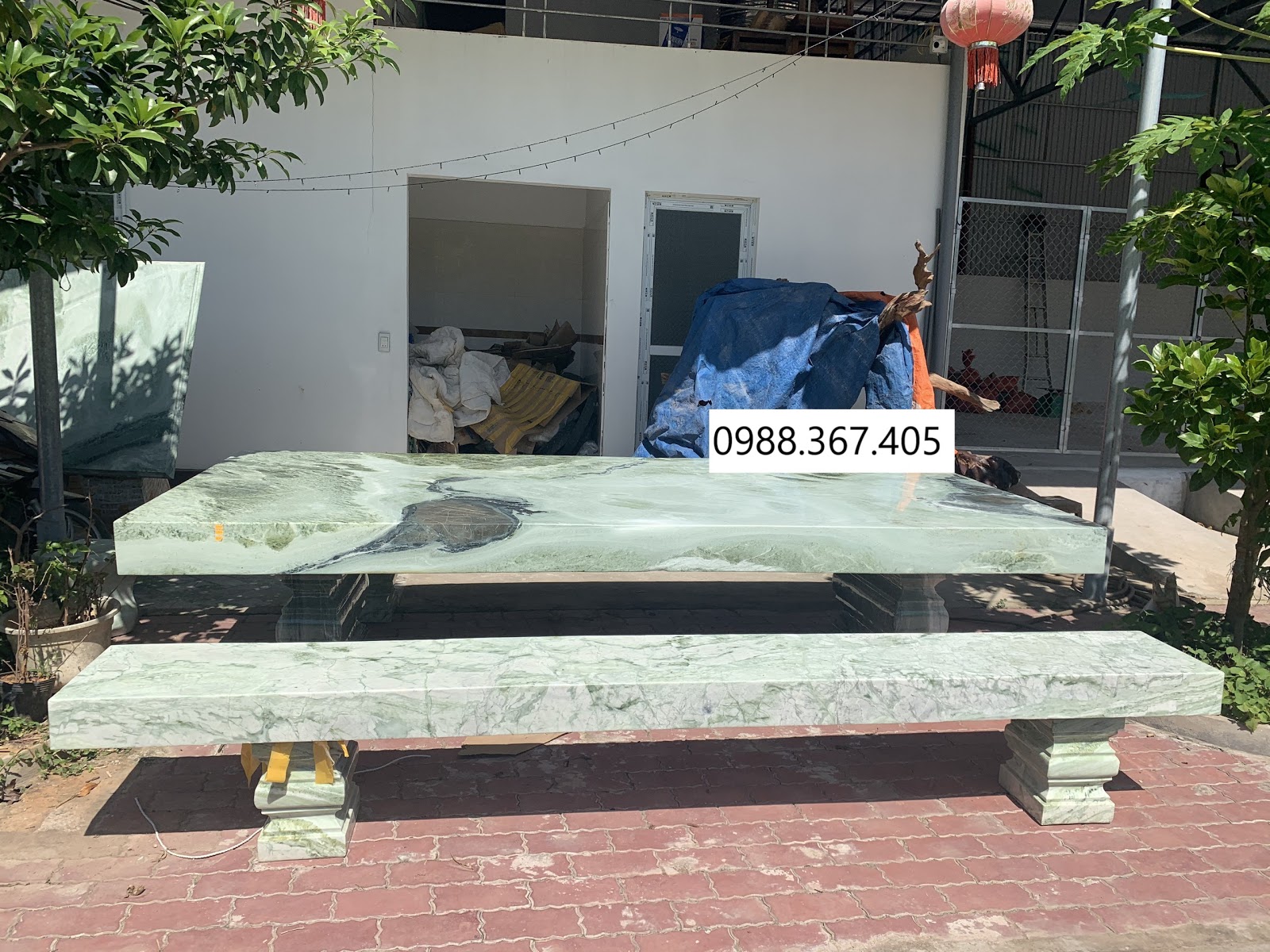 Hình ảnh hoàn thiện một bộ bàn ghế đá yên bái xanh tự nhiên