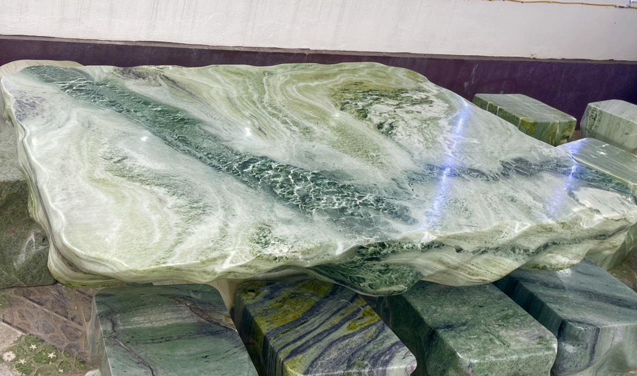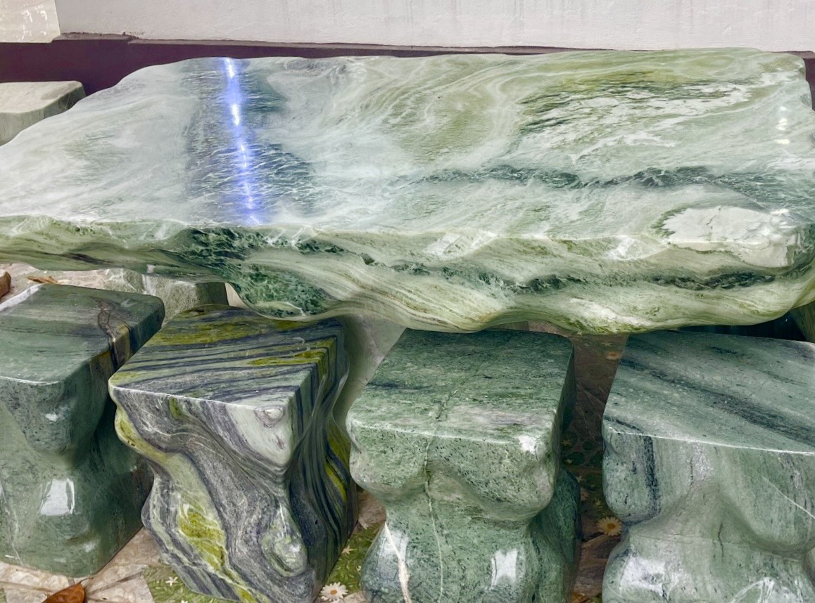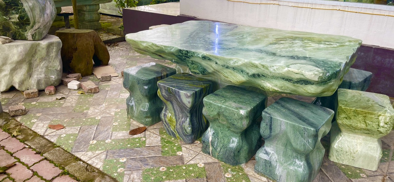 Bộ bàn ghế đá tự nhiên được chế tác từ ngọc Serpentine tại Yên Bái.