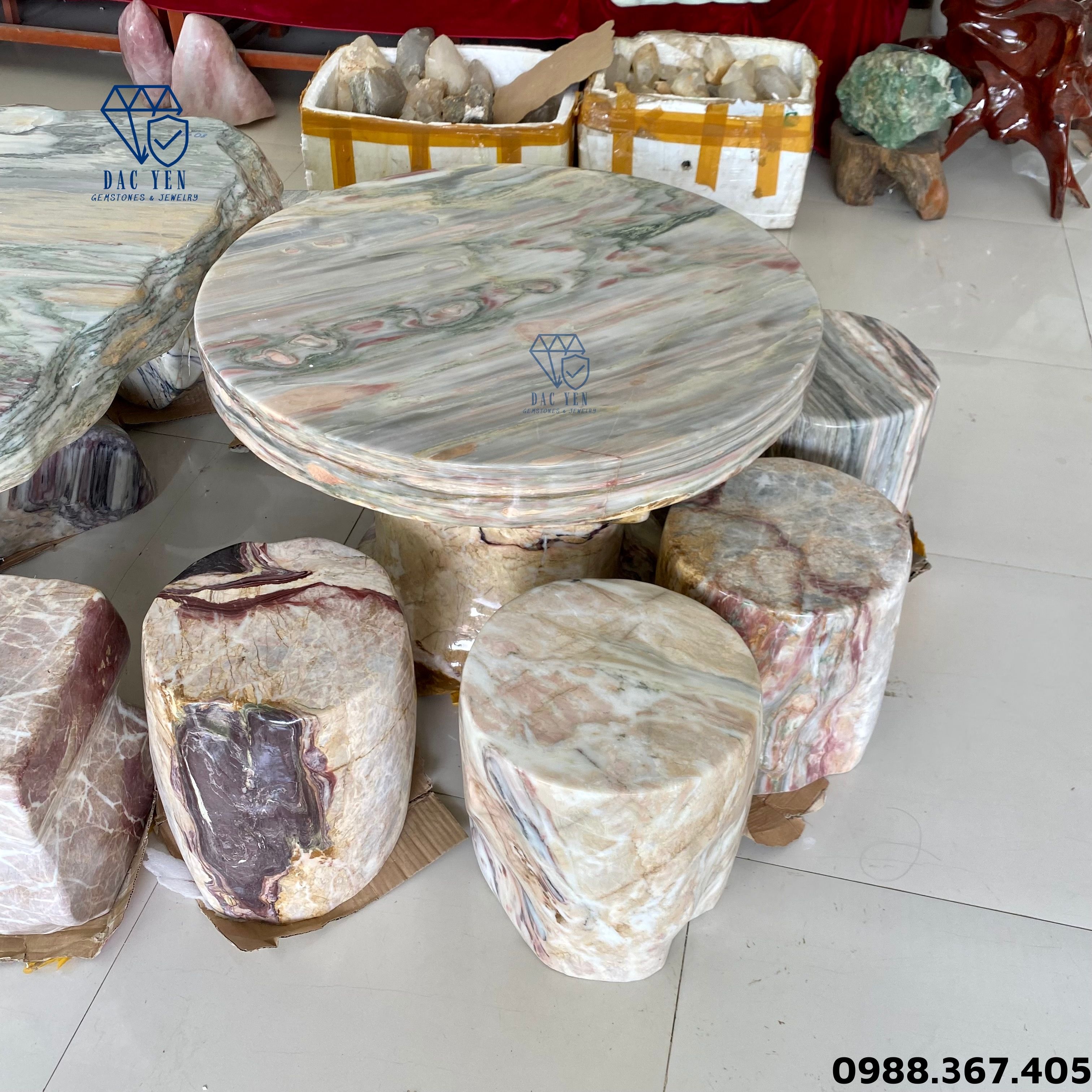 Bộ bàn ghế đá tự nhiên tròn có vân đá ngũ sắc Độc - Lạ