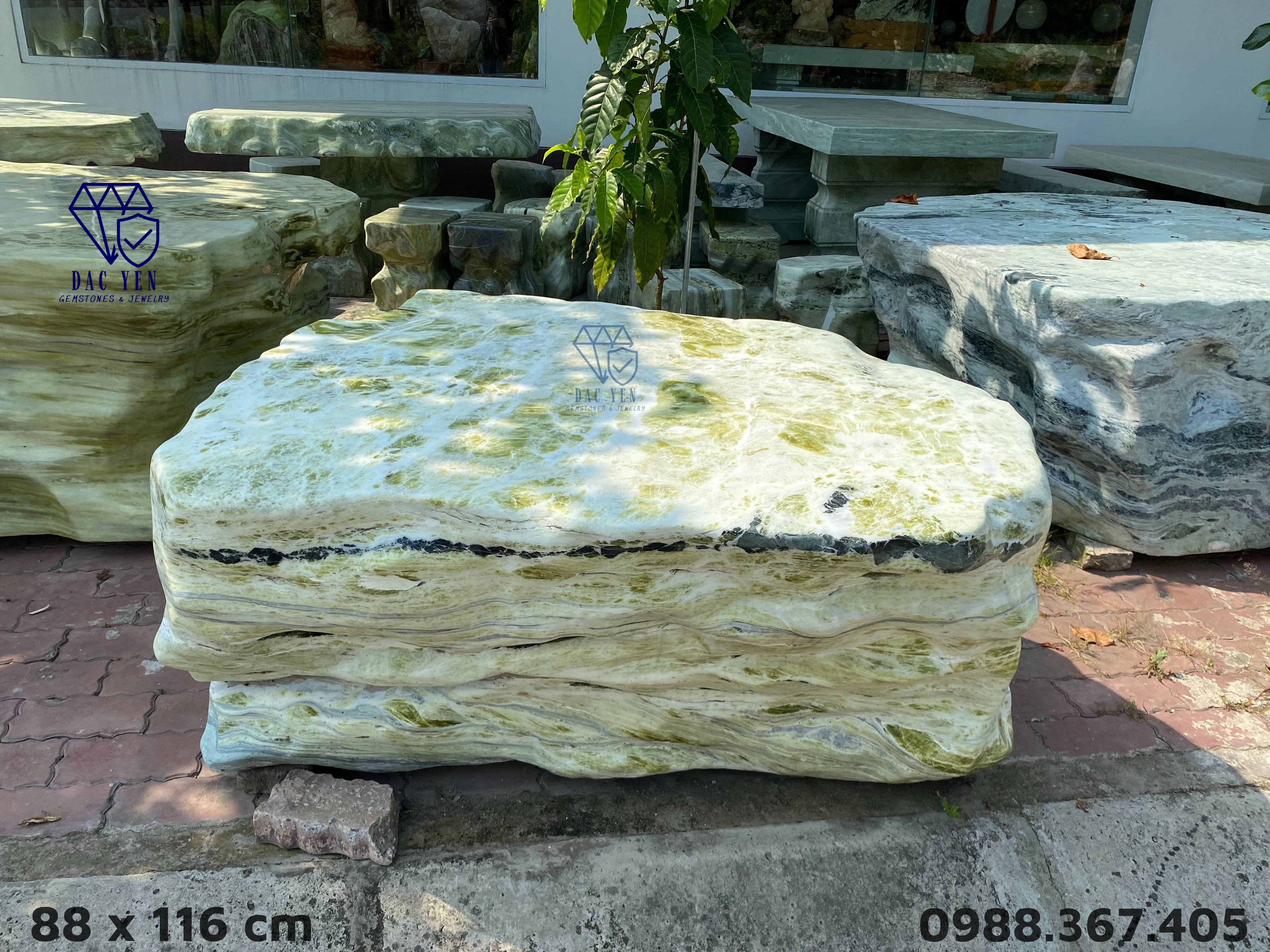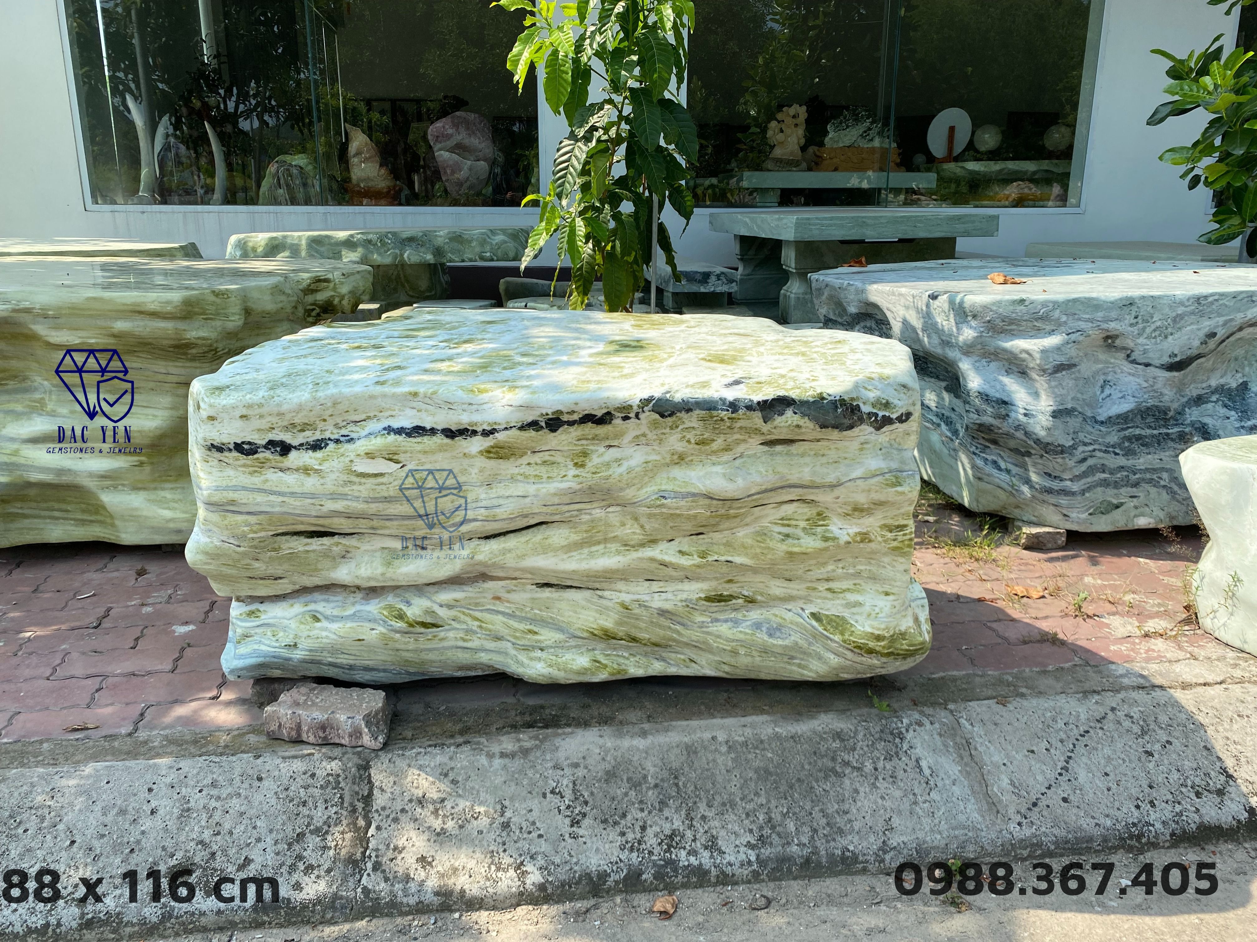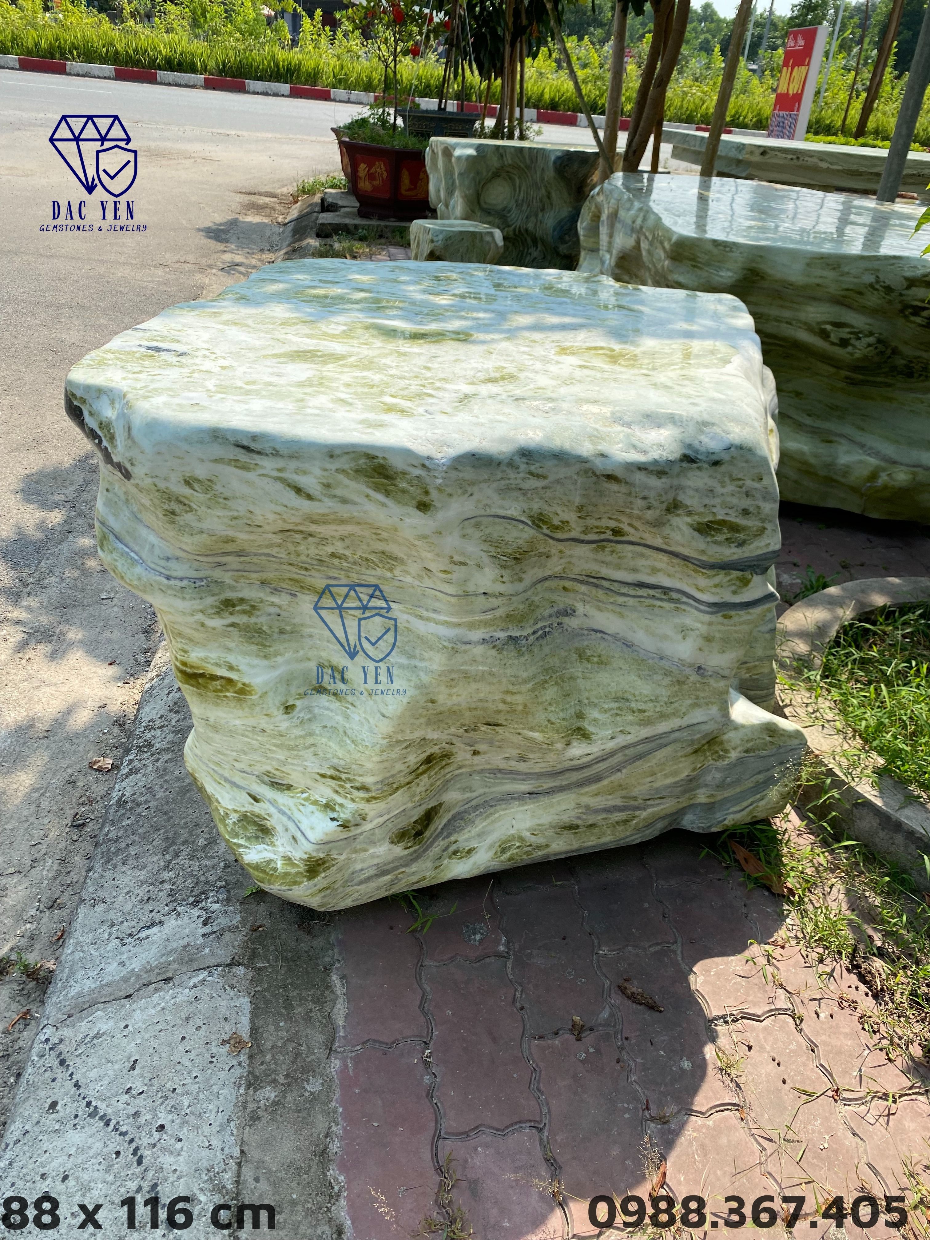 Bộ bàn ghế đá nguyên khối có màu xanh cốm