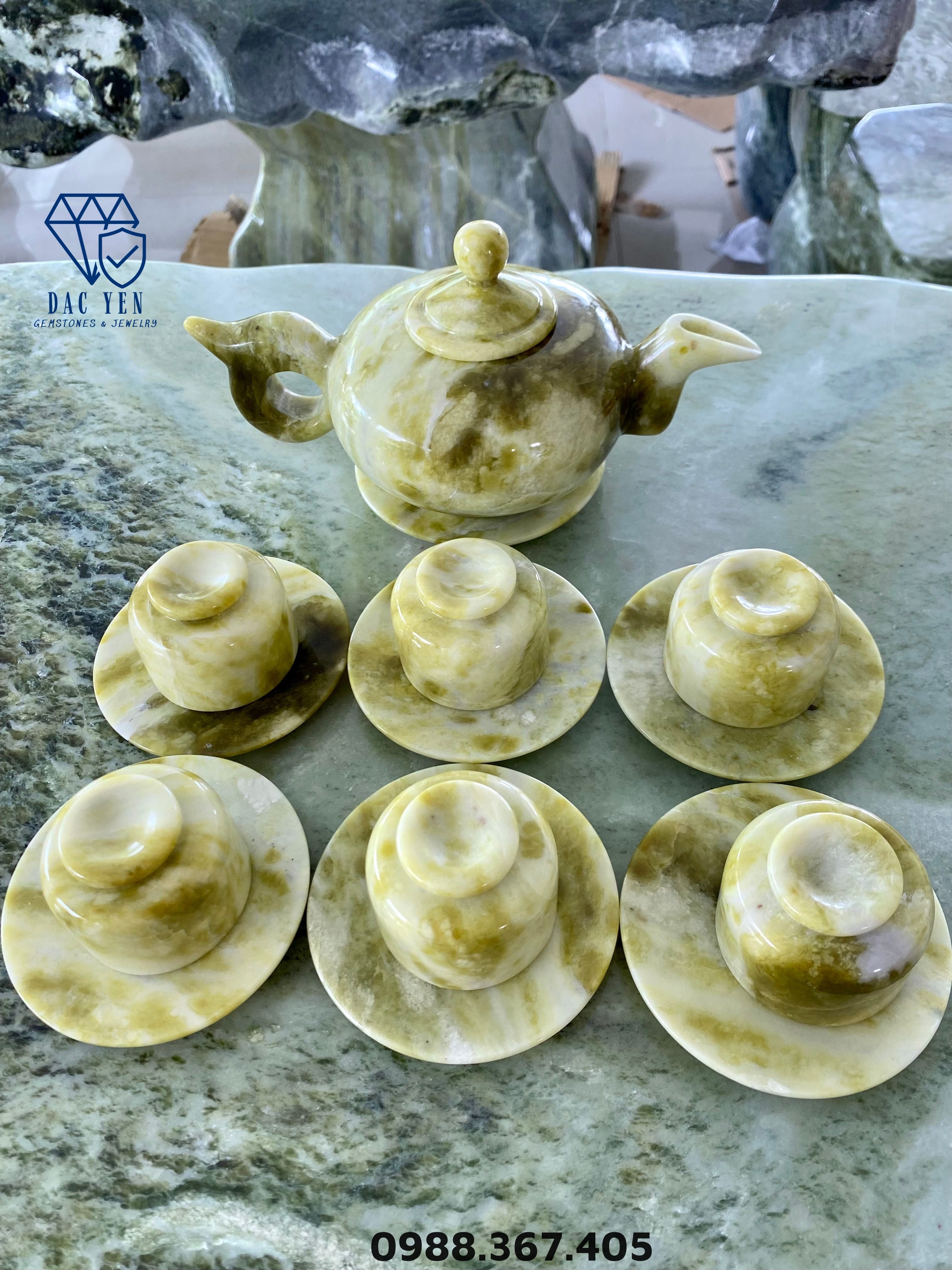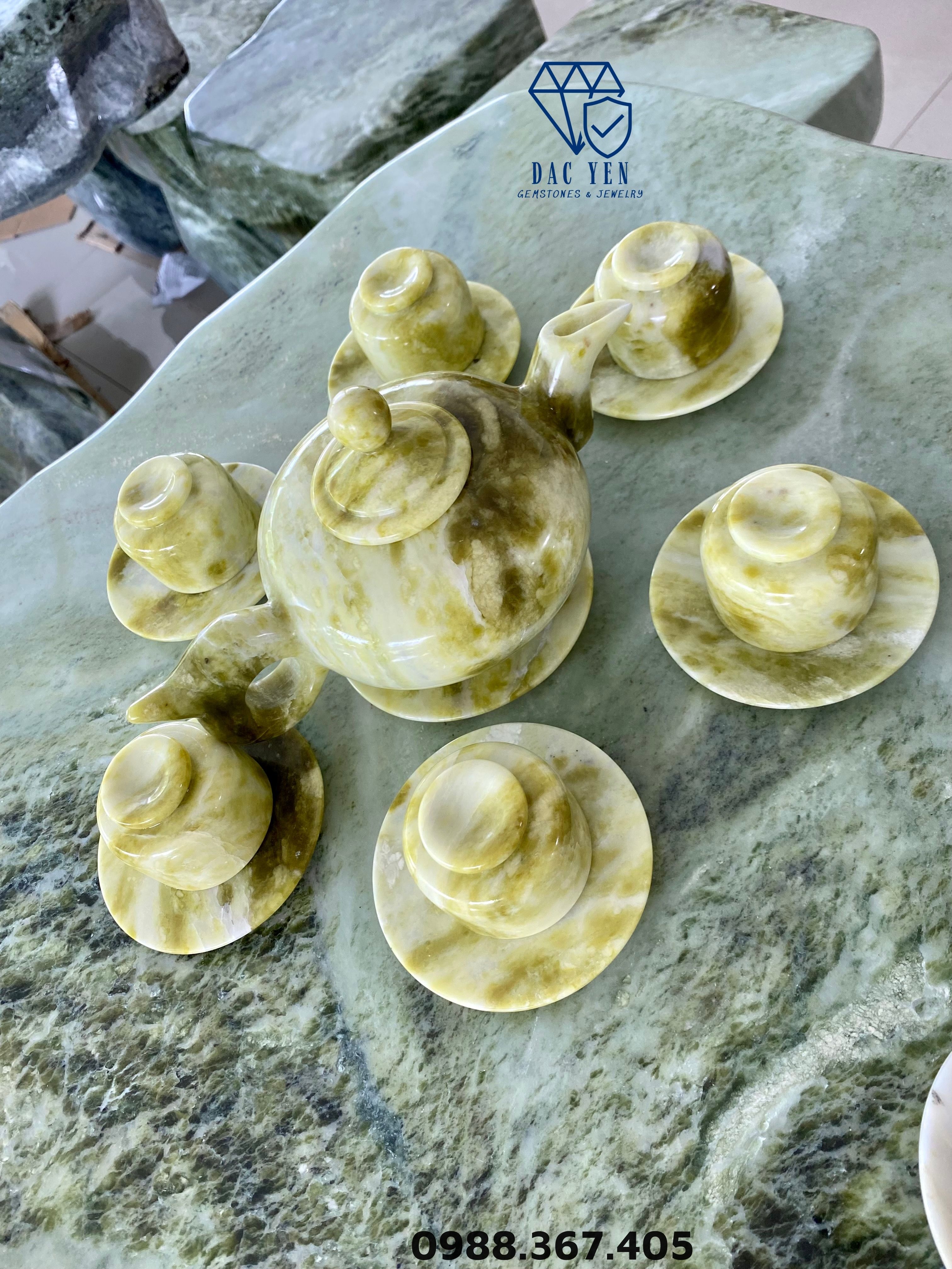 Bộ ấm chén ngọc Serpentine có nguồn gốc tại Yên Bái. Chất liệu đá serpentine sáng, hoa văn sắc nét, độc lạ mang lại sự ĐẲNG CẤP cho gia chủ.