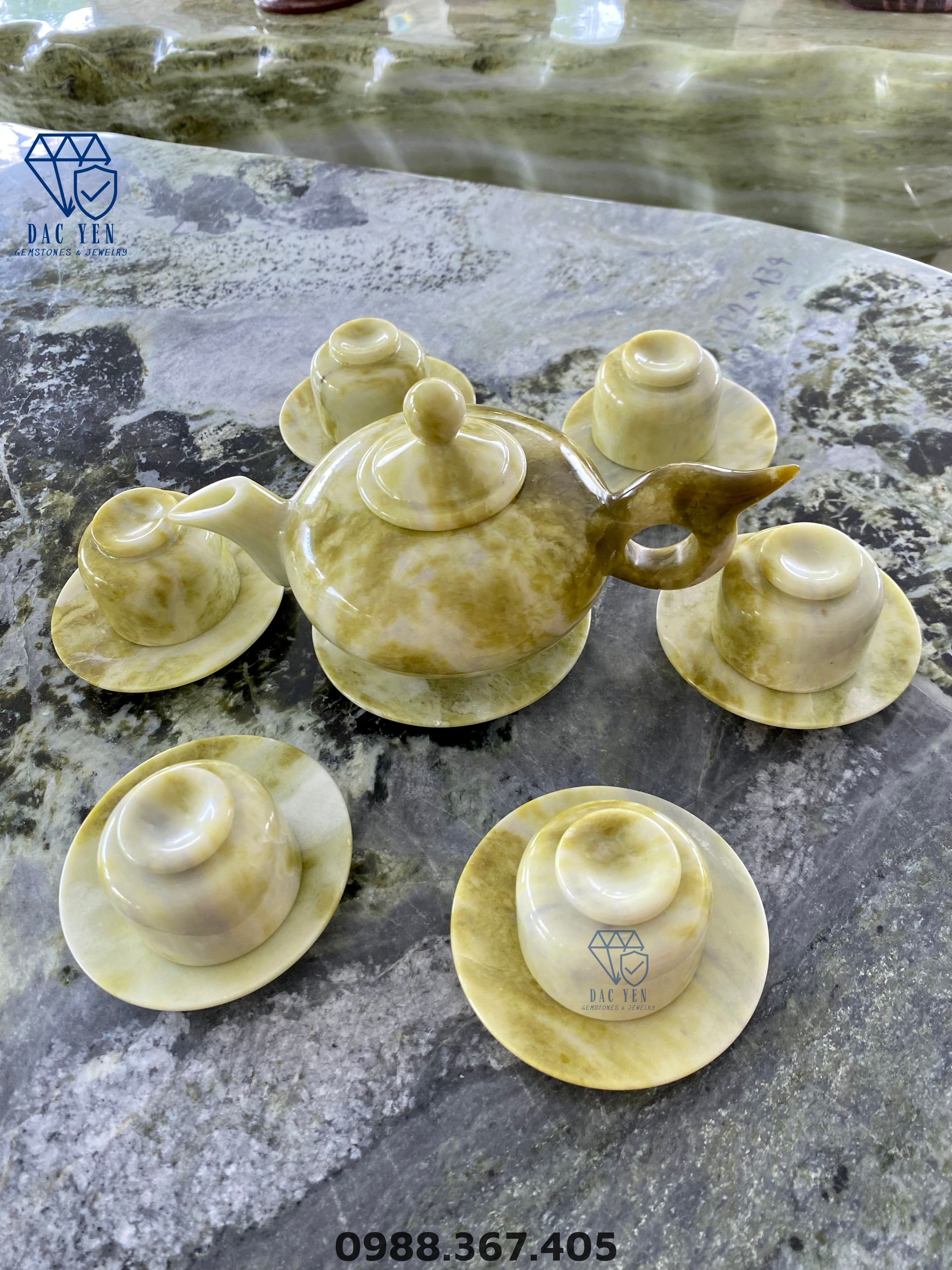 Bộ ấm chén ngọc Serpentine có nguồn gốc tại Yên Bái. Chất liệu đá serpentine sáng, hoa văn sắc nét, độc lạ mang lại sự ĐẲNG CẤP cho gia chủ.