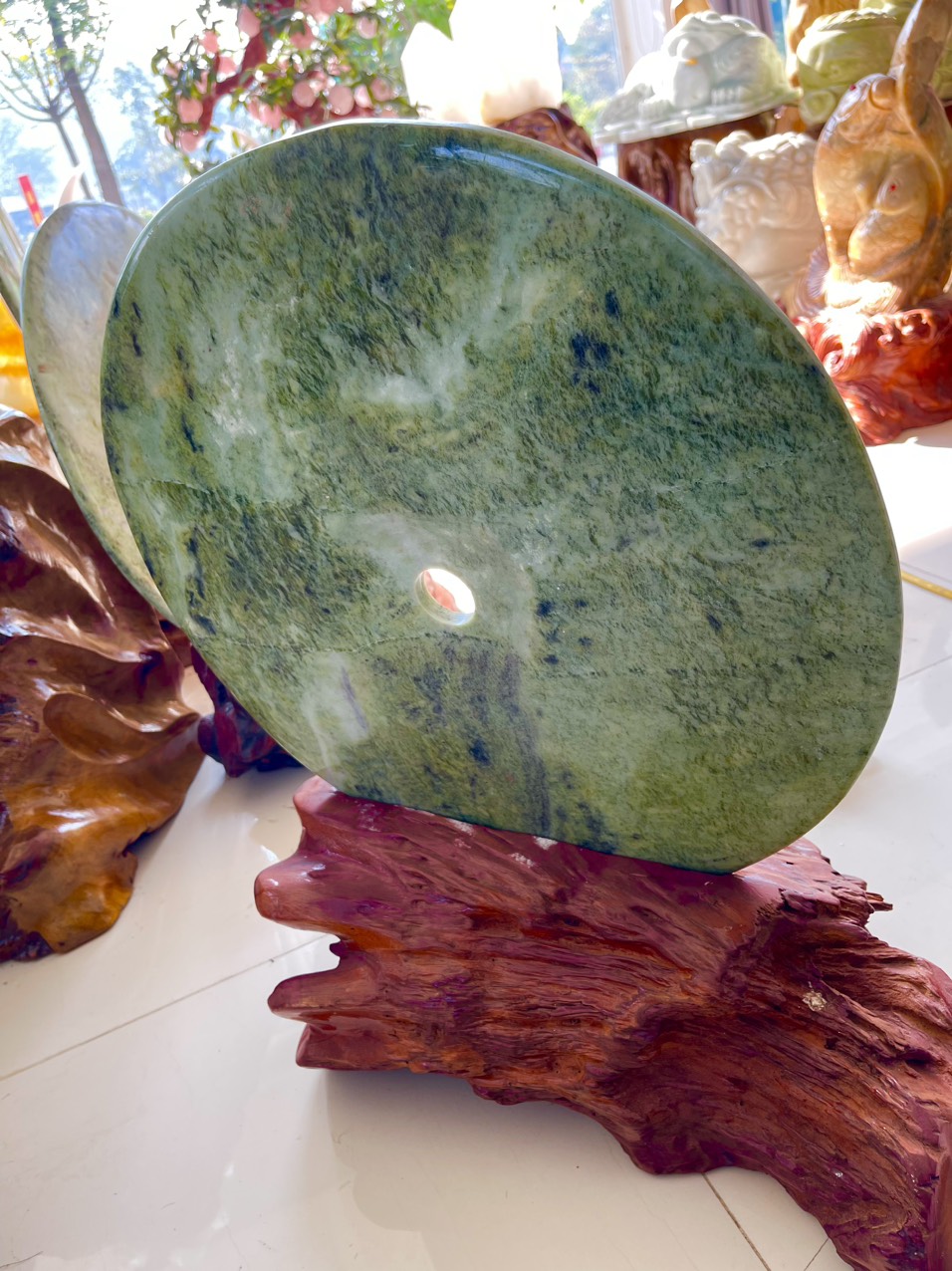 Đồng điếu hay gọi là đồng tiền may mắn được chế tác bắng đá ngọc Serpentine nguyên khối,