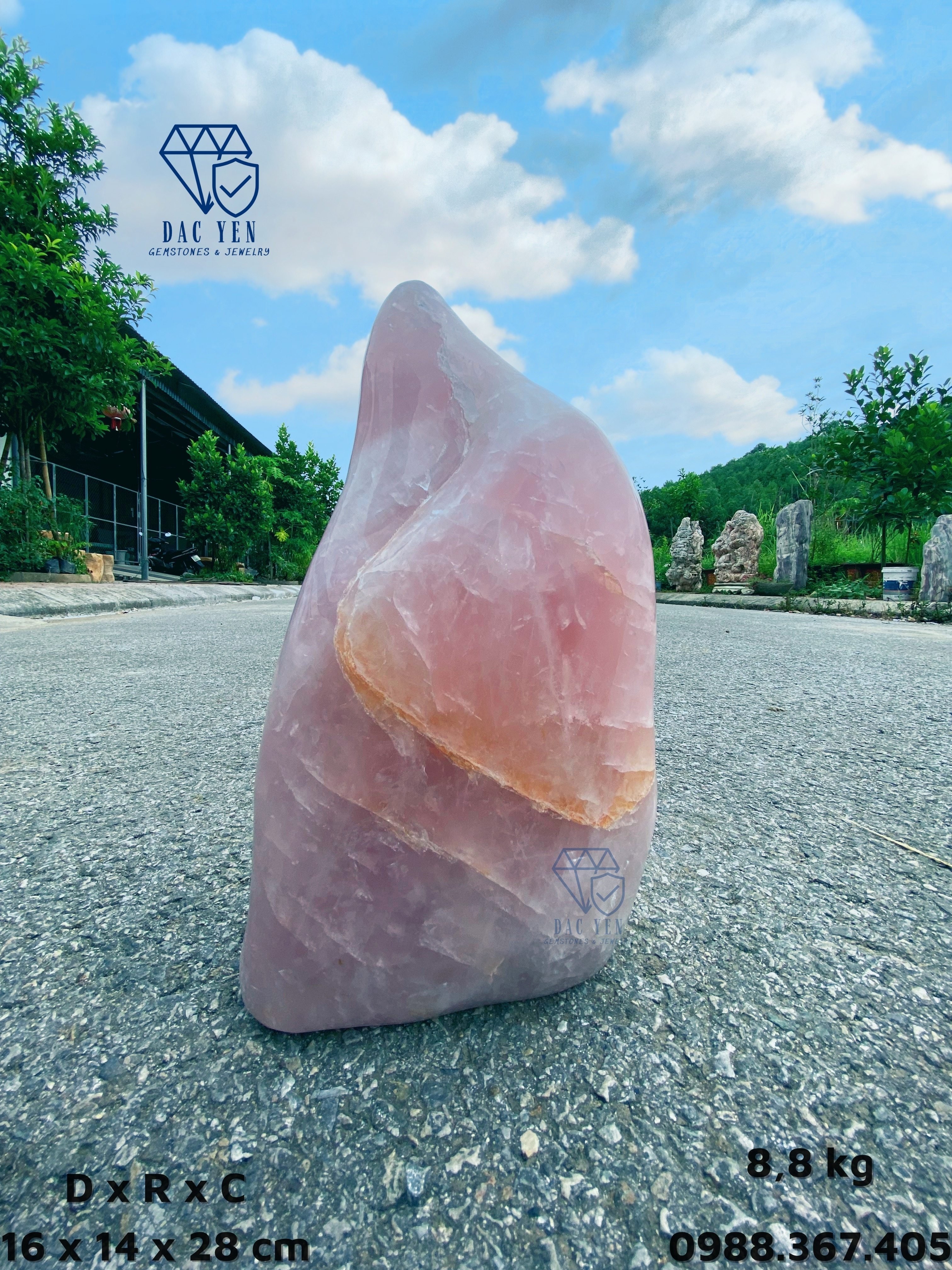 Cây đá thạch anh hồng tự nhiên nặng 8,8 kg