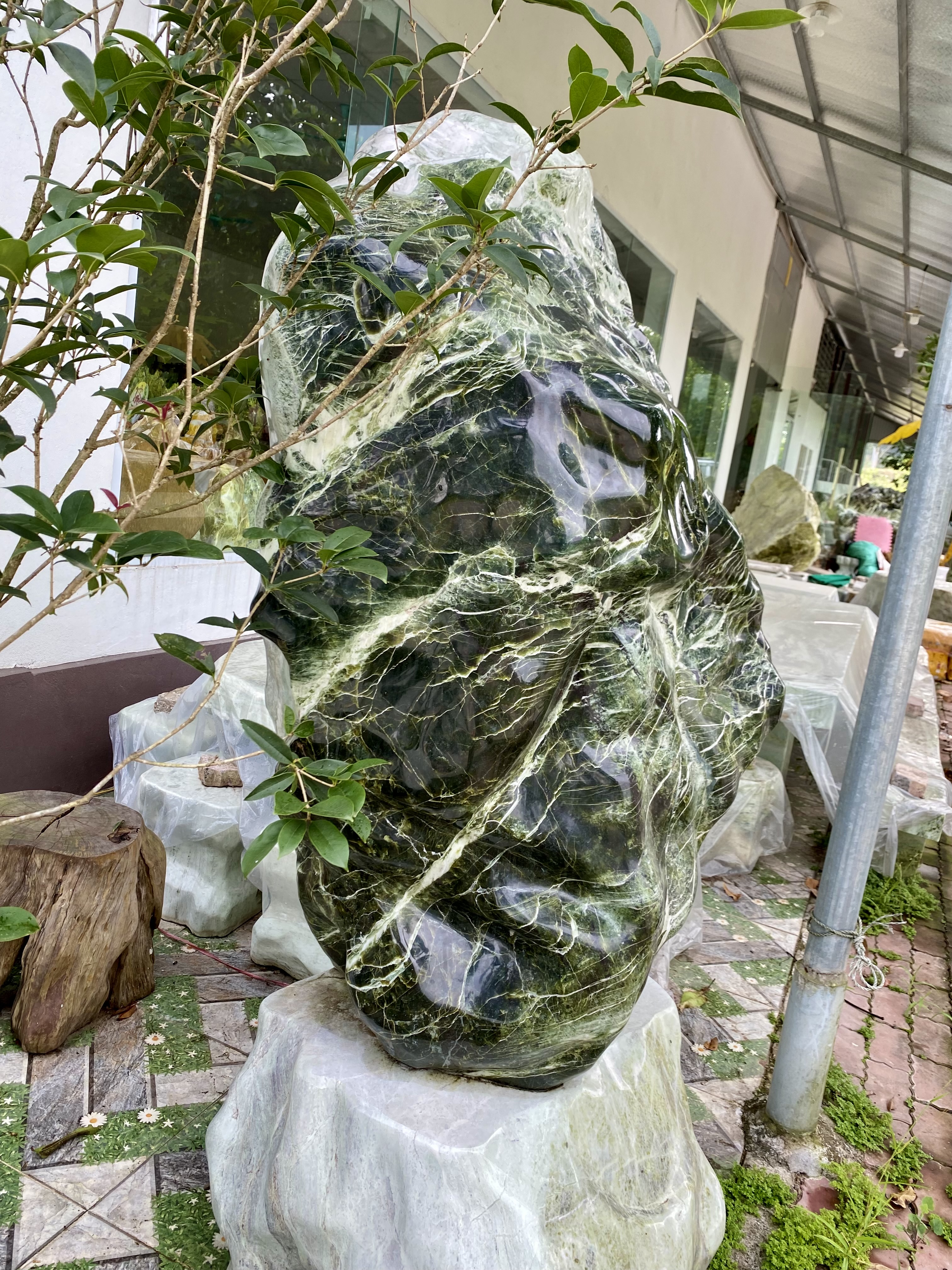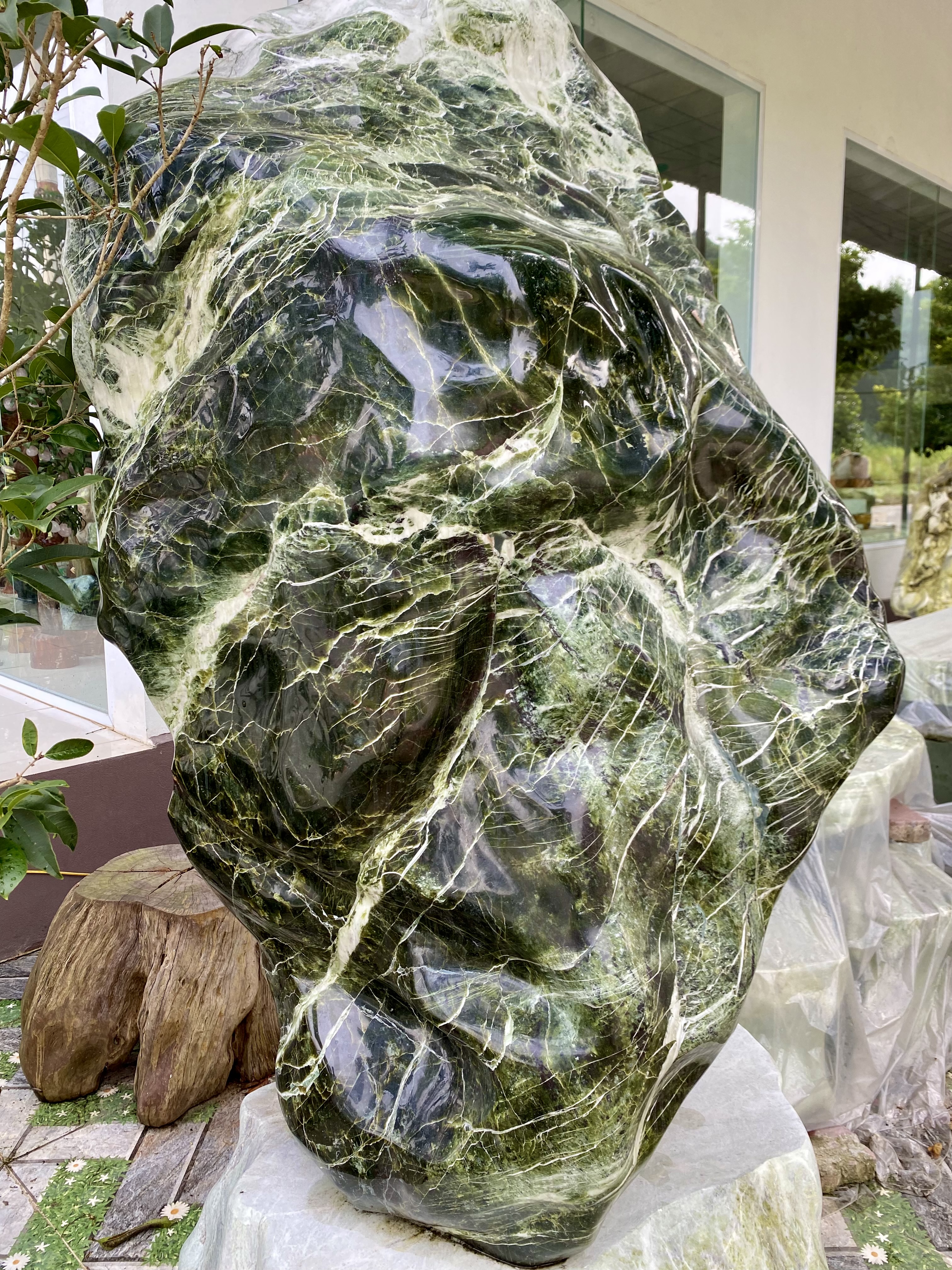 Khối ngọc Serpentine này là khối đá VIP và hiếm hiện nay bởi chúng có kích thước lớn, kiểu dáng bệ vệ, hoành tráng mà những khối đá nhỏ không thể có.