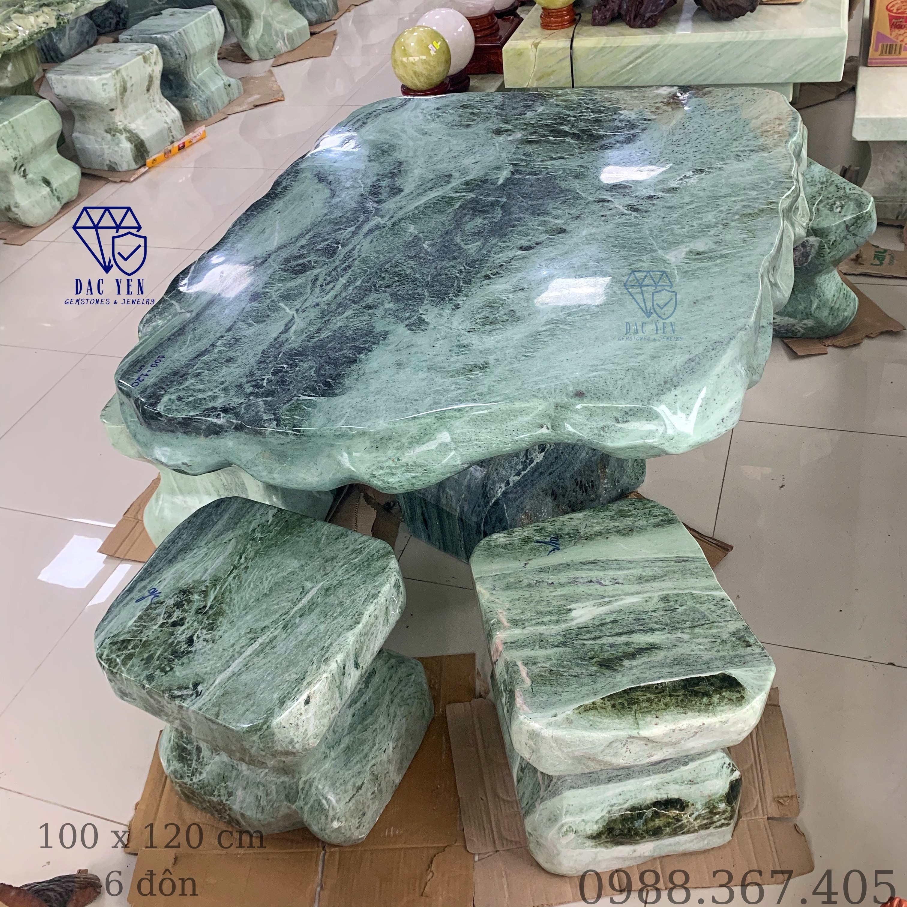 Bộ bàn ghế đá serpentine tự nhiên với 6 đôn đi kèm