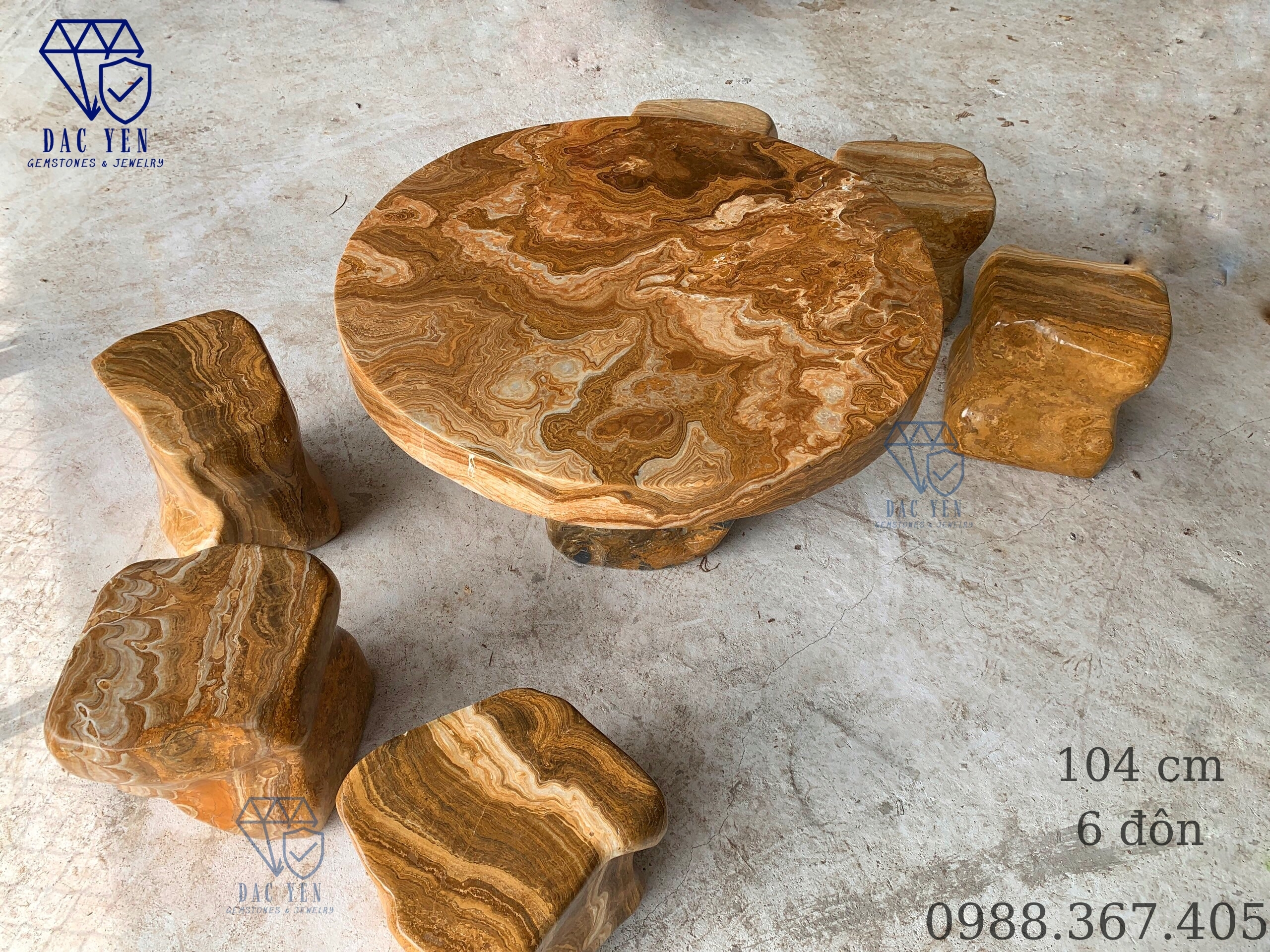 - Bộ bàn ghế đá tự nhiên rời, 6 đôn đi kèm có kích thước dưới 1m.