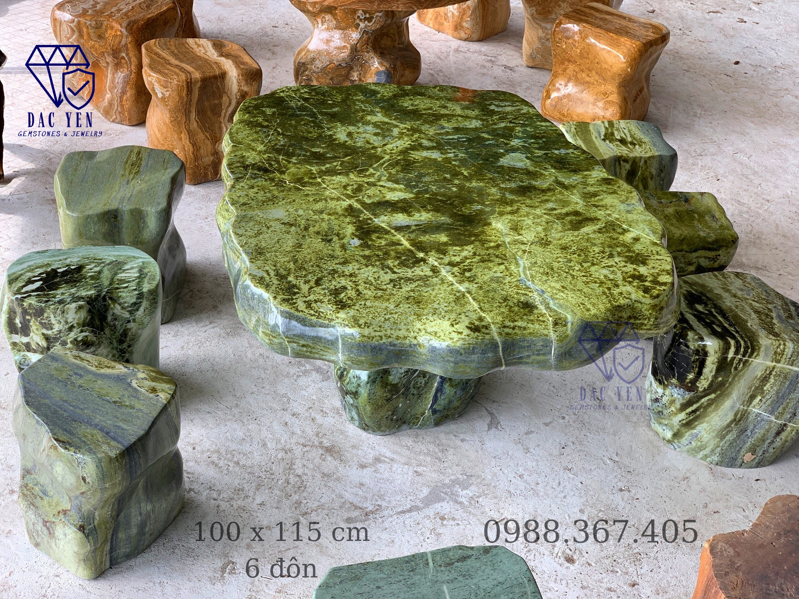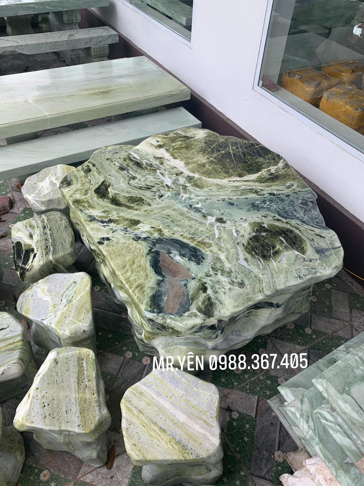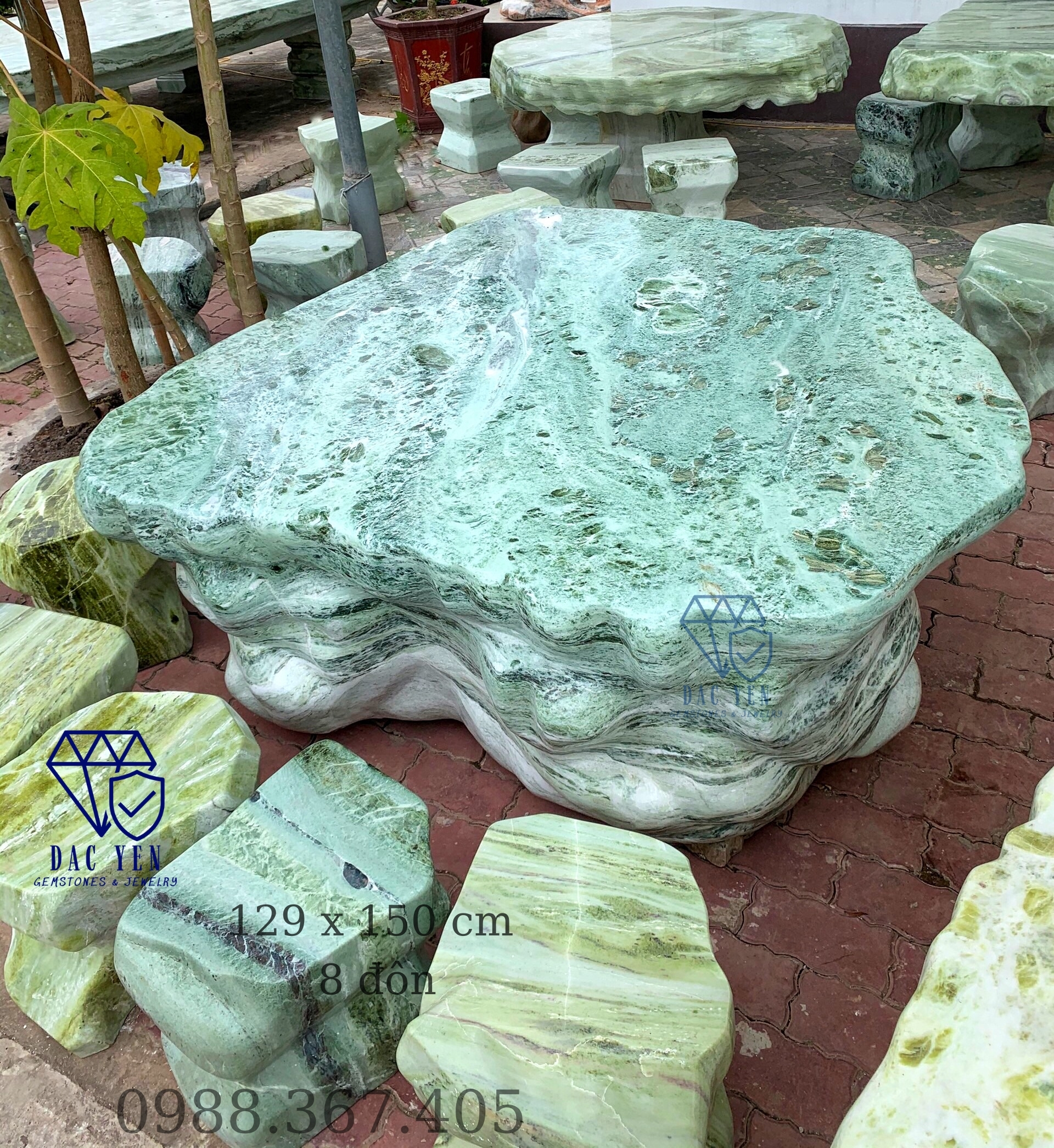Bộ bàn ghế đá tự nhiên xanh tại showroom
