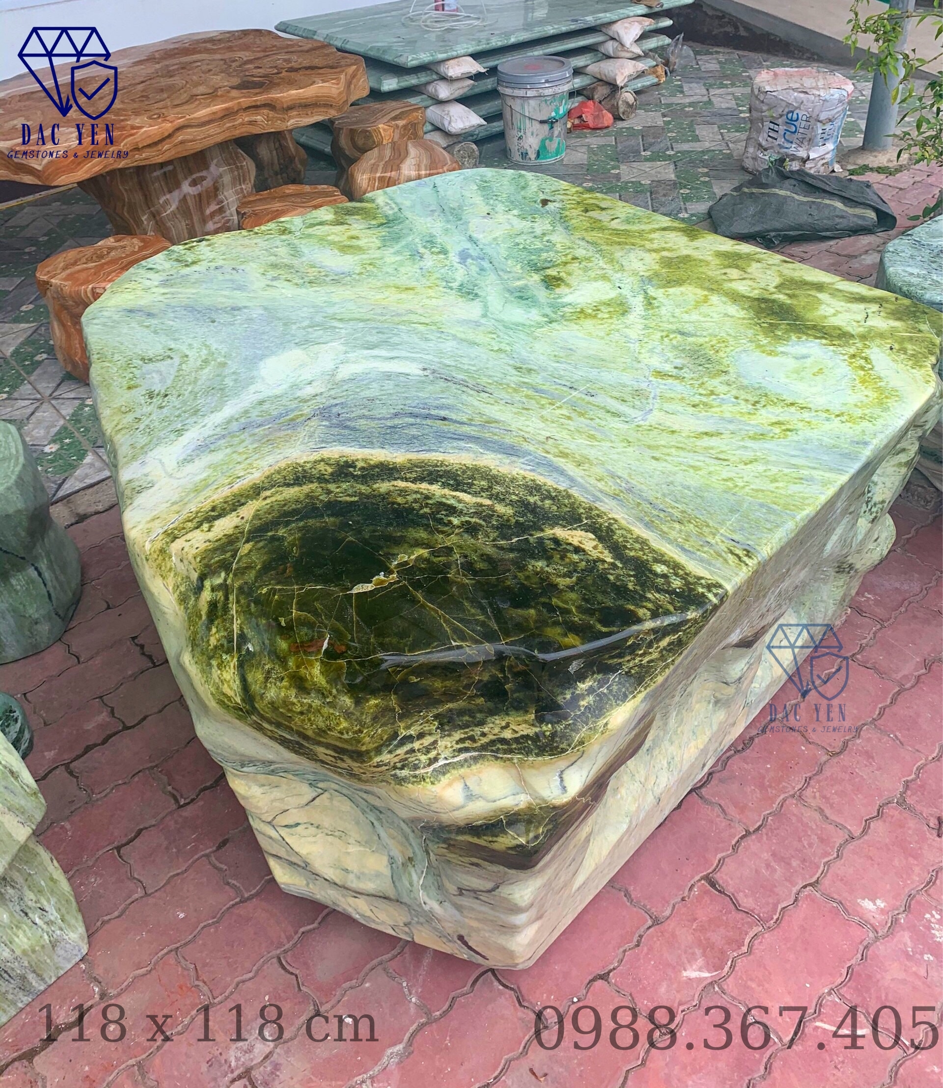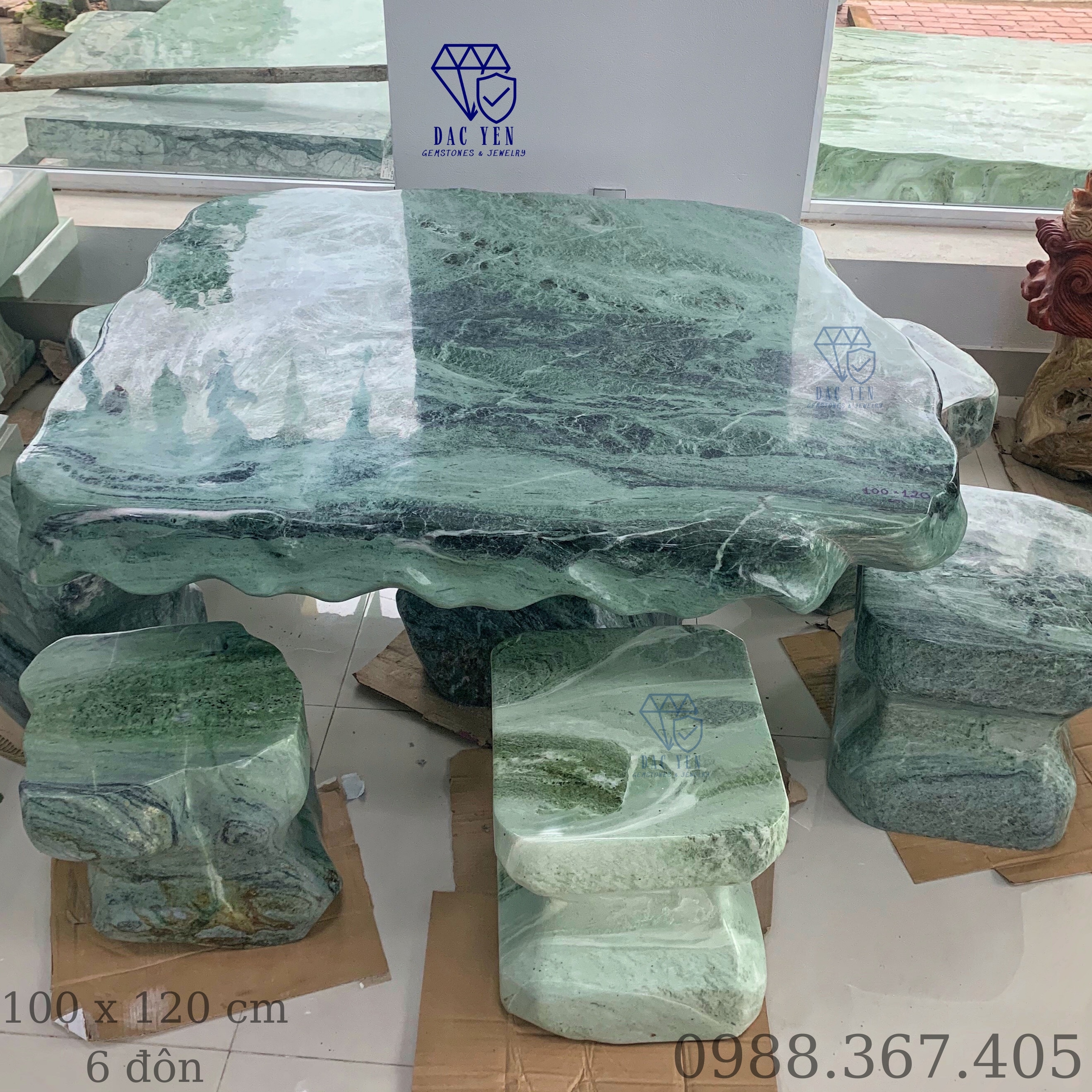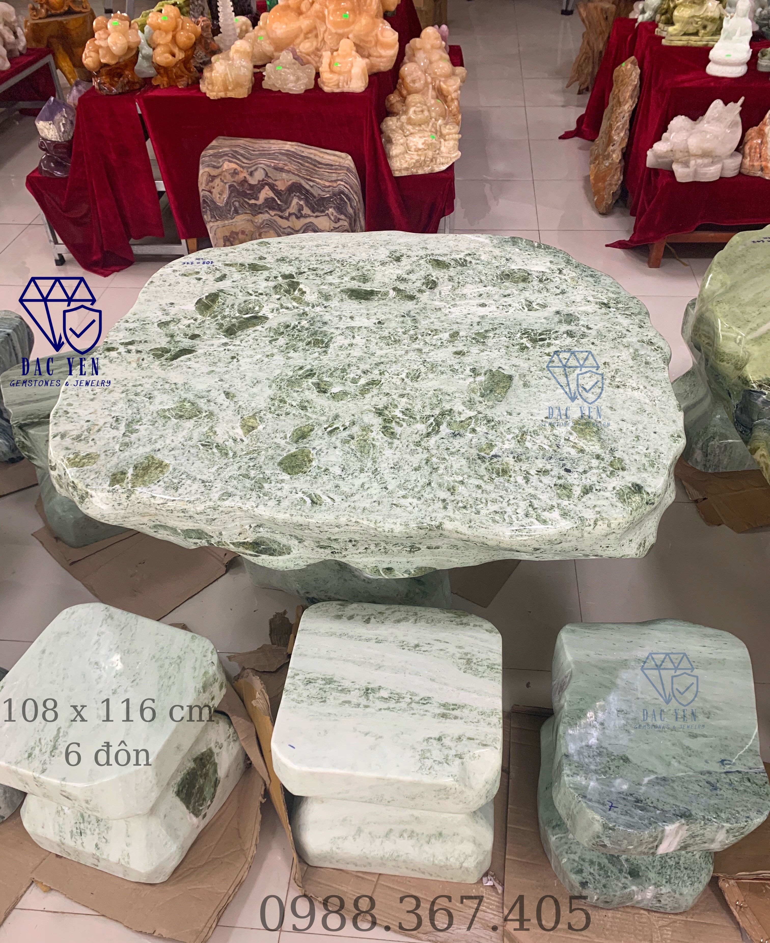 Bộ bàn ghế đá tự nhiên xanh tại showroom