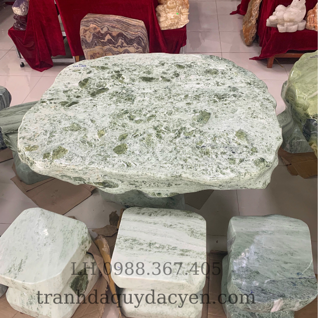 Bộ bàn ghế đá tự nhiên serpentine xanh trưng bày tại showroom