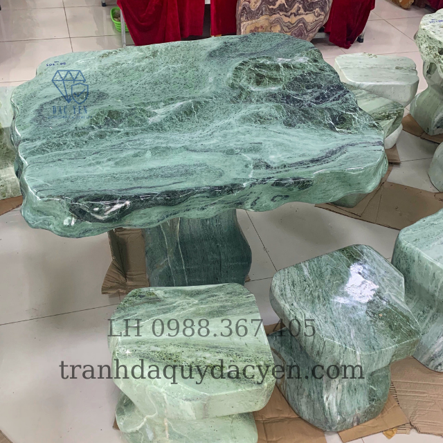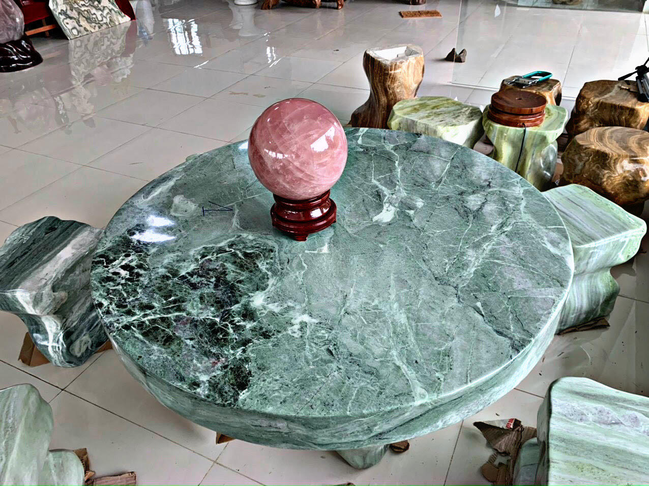 Bộ bàn ghế đá tự nhiên nguyên khối ngọc serpentine