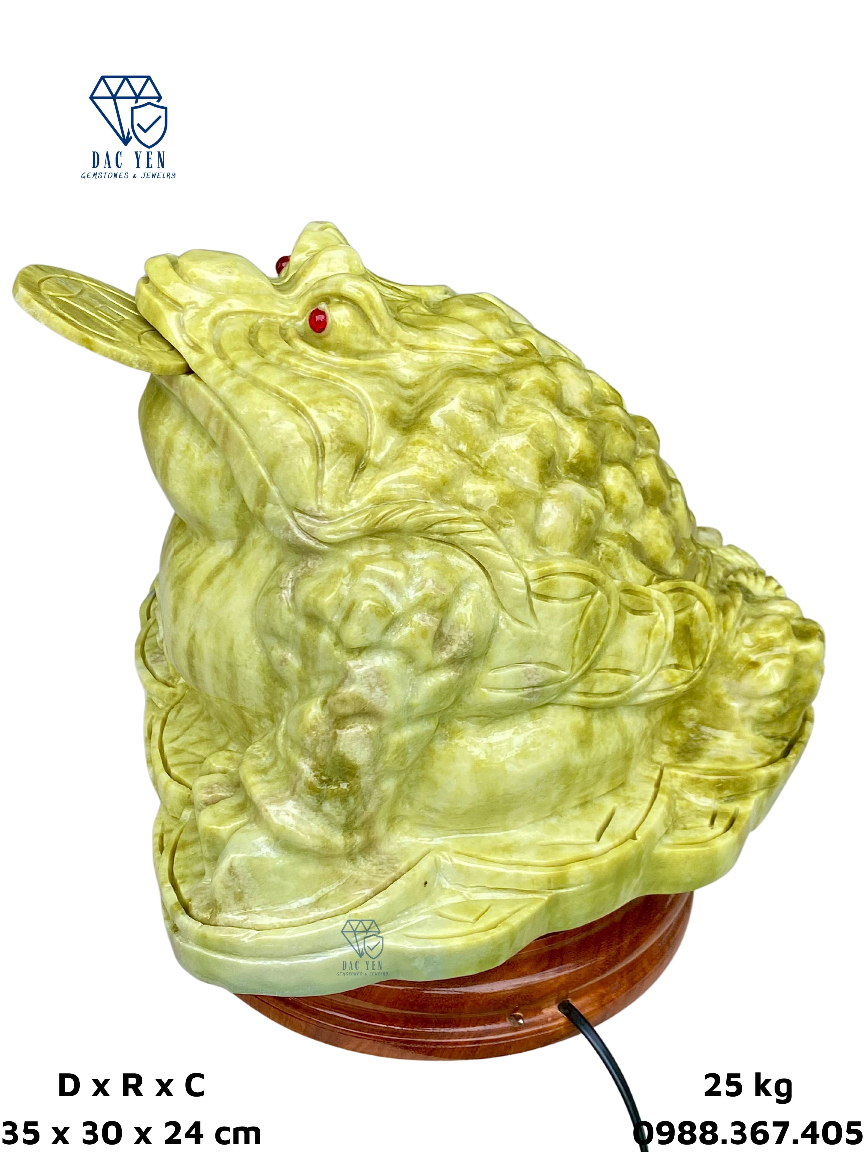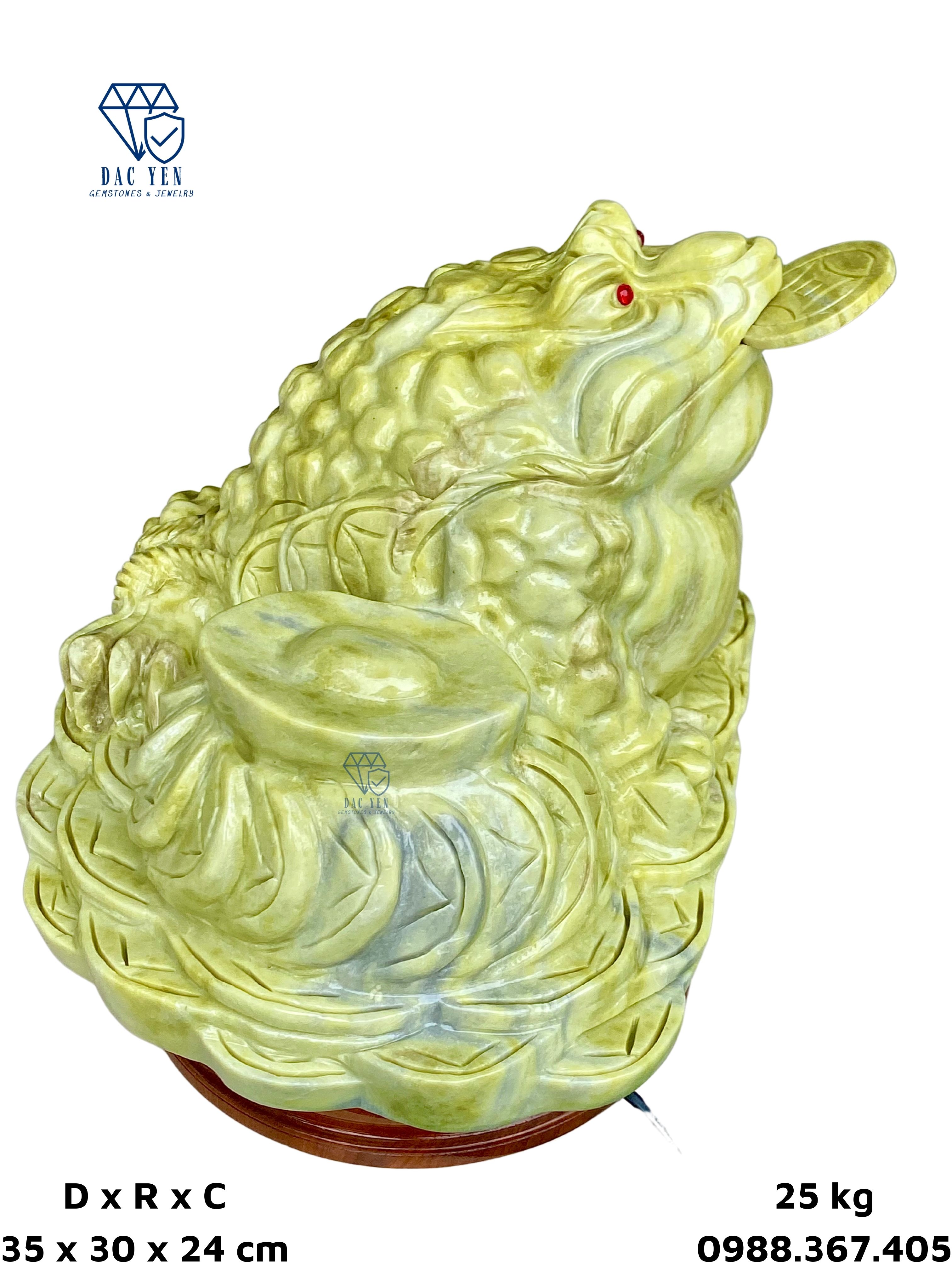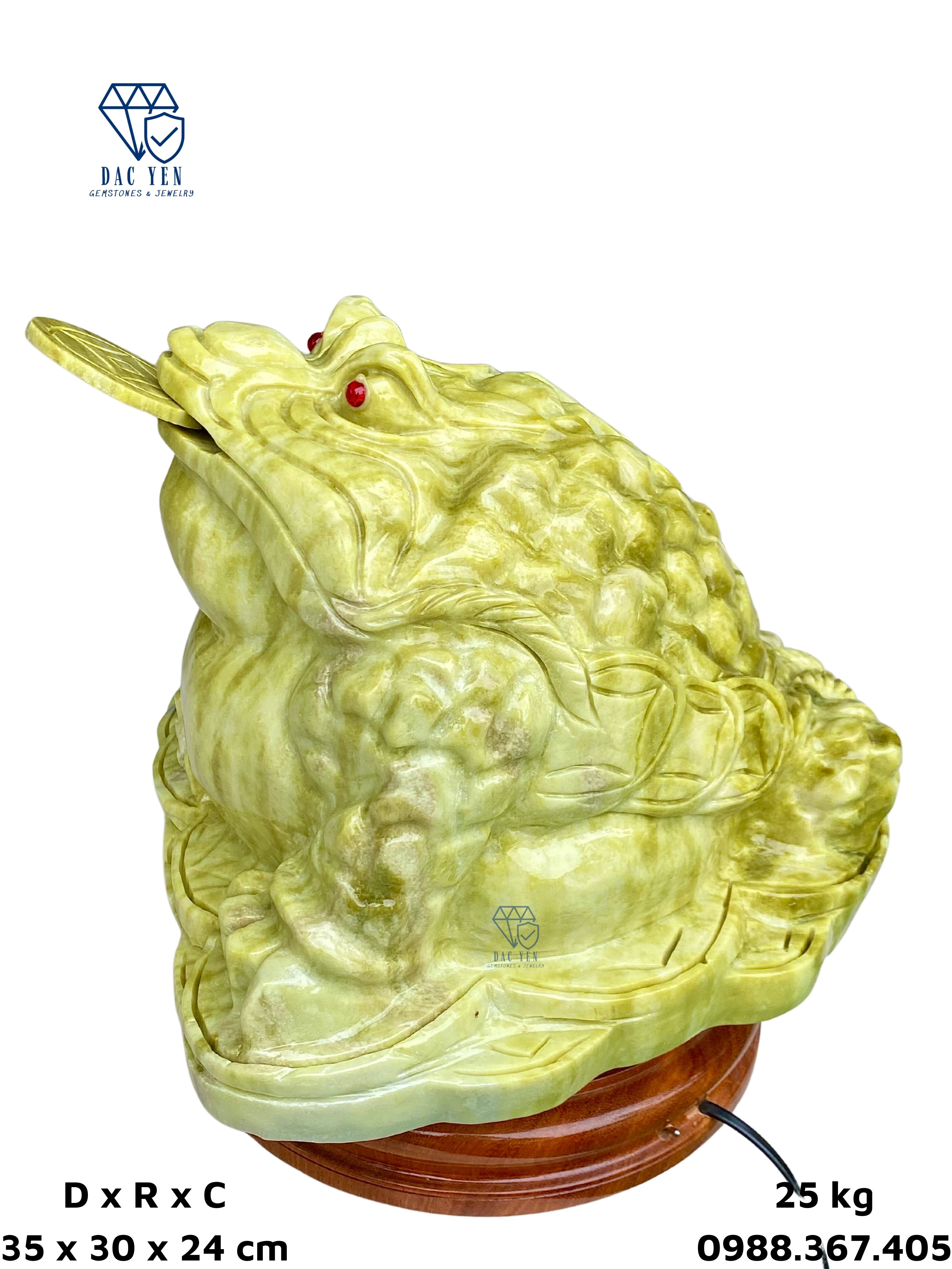 Cóc thiềm thừ được chế tác tại xưởng chế tác đá Yên Bái có chất liệu từ Ngọc Serpentine. Serpentine thường thấy nhất có màu xanh lục, nhưng đôi khi nó cũng có thể thay đổi từ từ nâu sang đen và từ trắng, vàng đến xám.