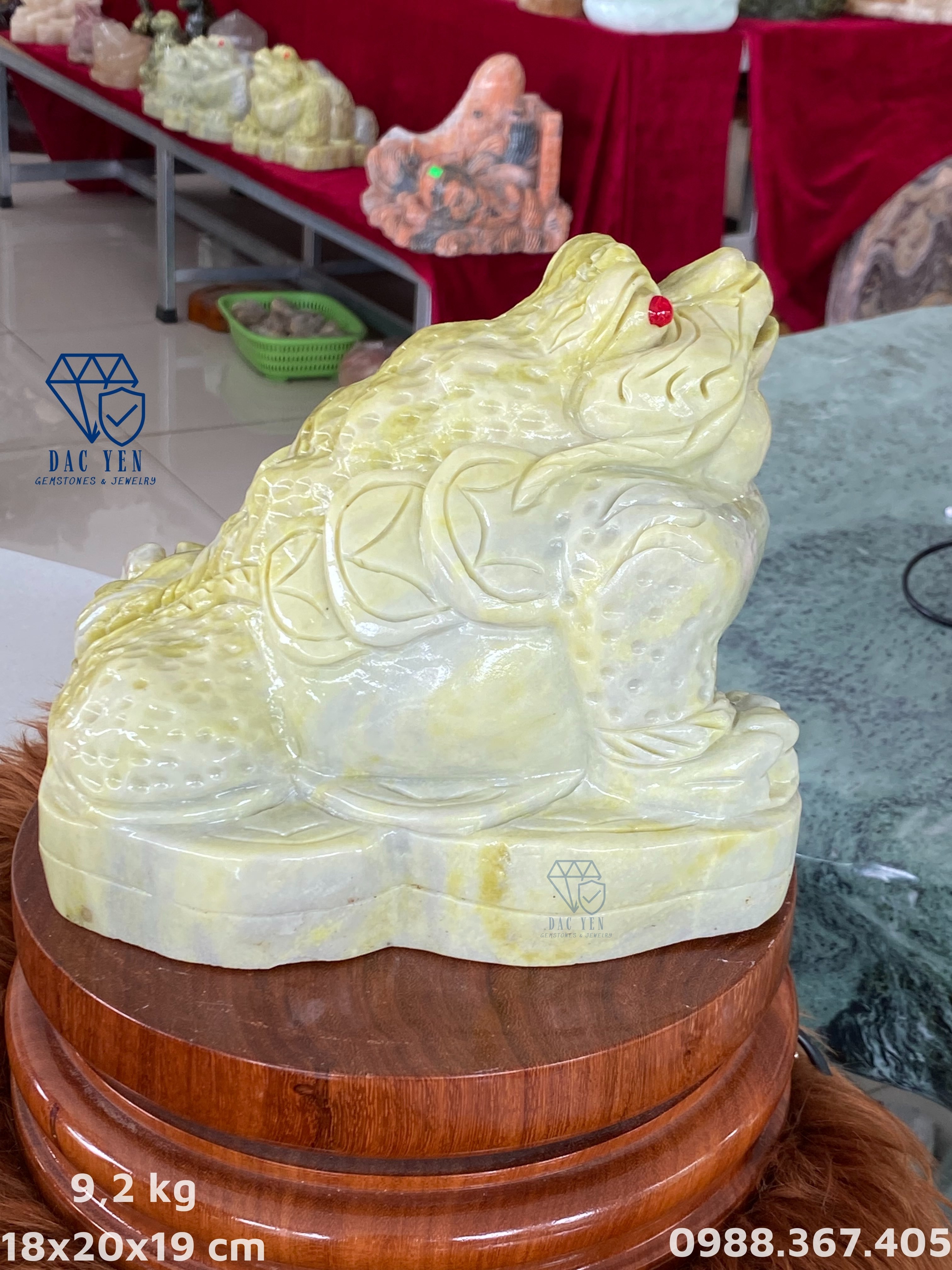 Cóc thiềm thừ từ đá ngọc serpentine xanh tự nhiên nặng 9,2 kg