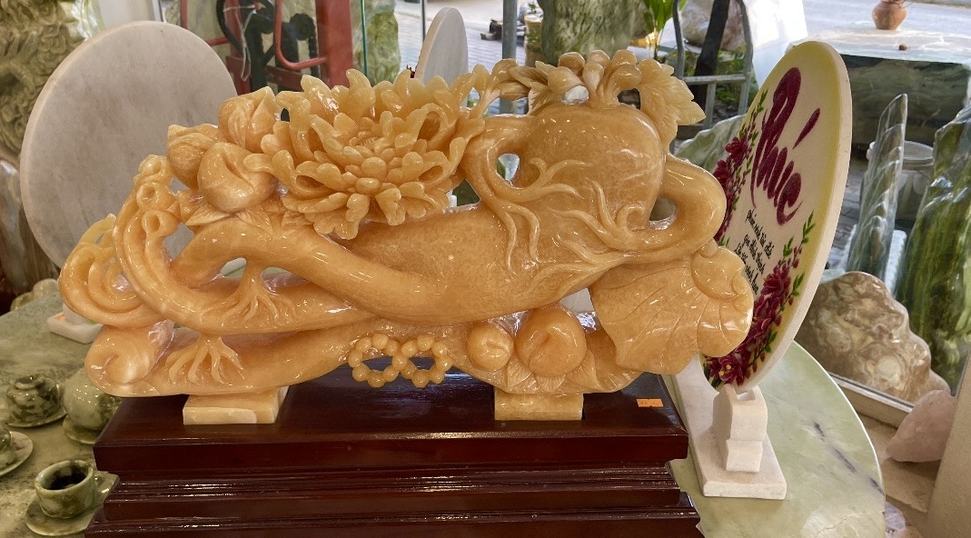 Không gian trưng bày phong thủy cao cấp Đây không chỉ là một tác phẩm nghệ thuật, mà còn là linh vật phong thủy mang trọn ba phúc lớn của đời người: Phú Quý – Như Ý – Trường Thọ.