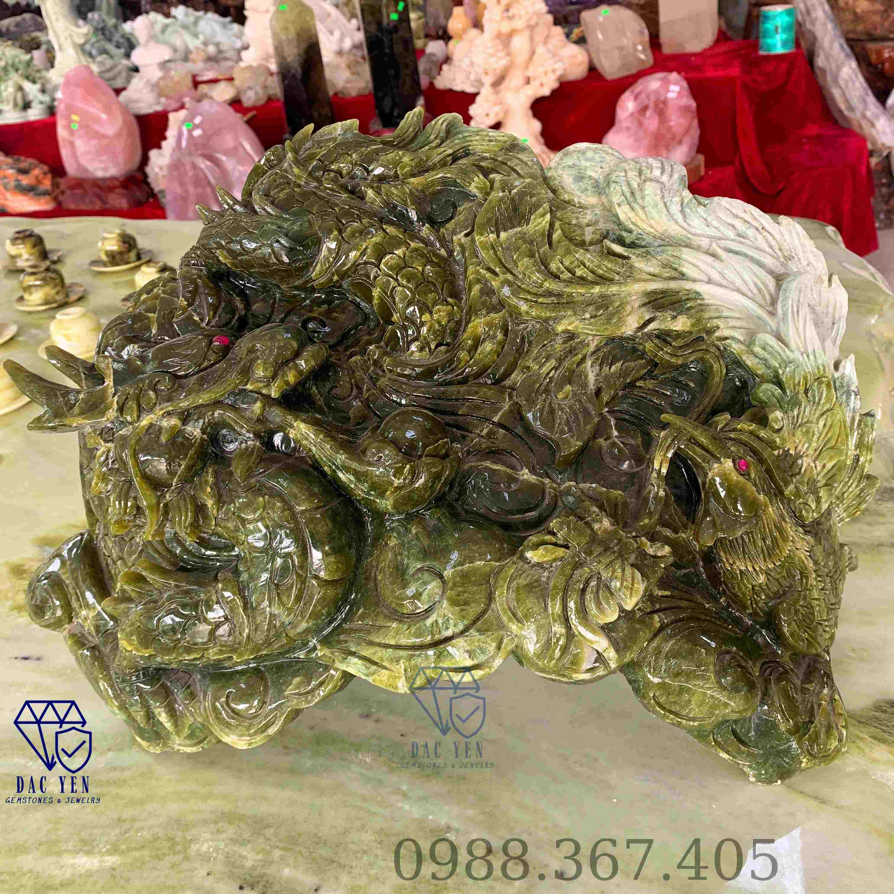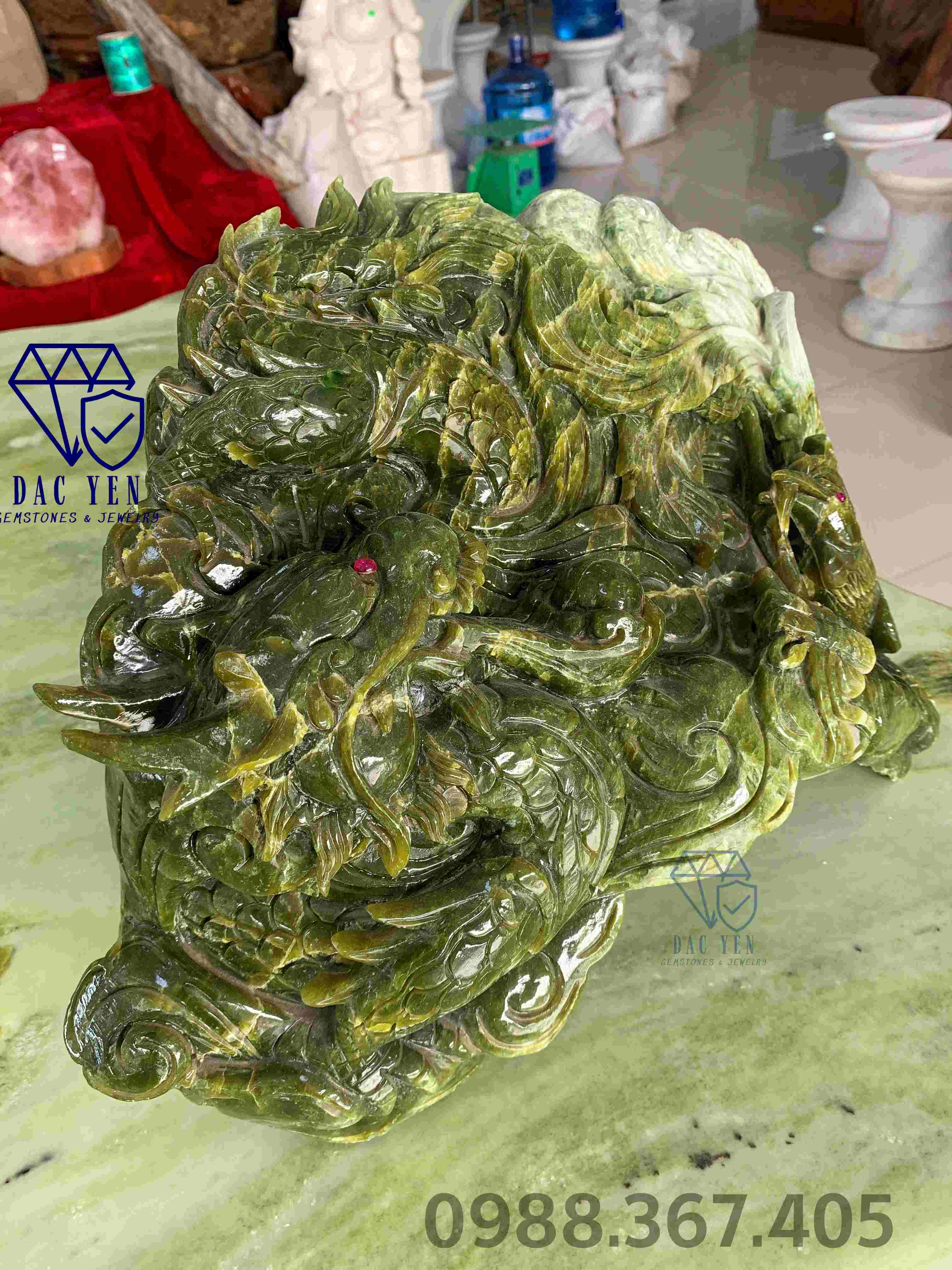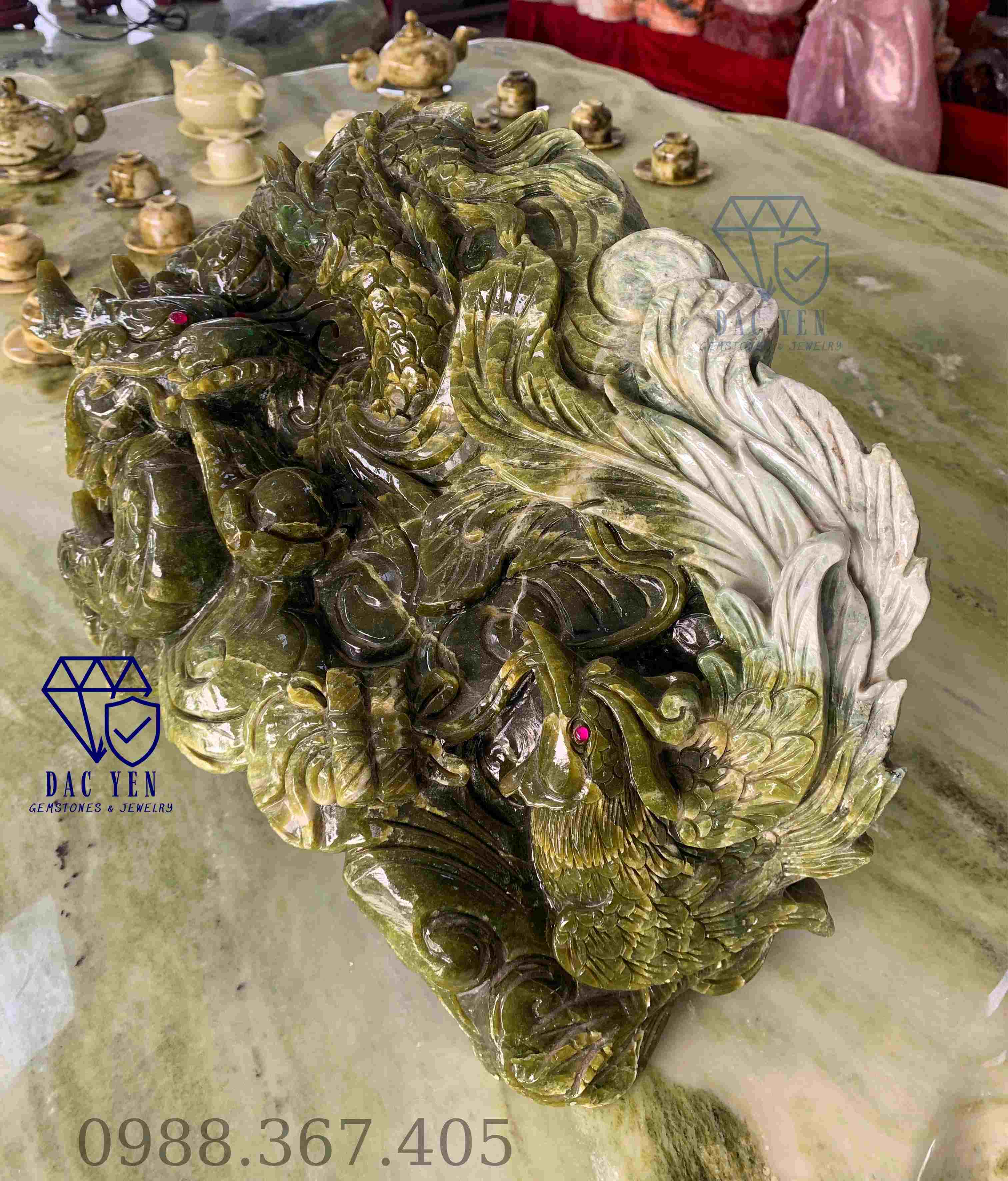 Đôi rồng phượng chế tác từ đá ngọc serpentine tự nhiên