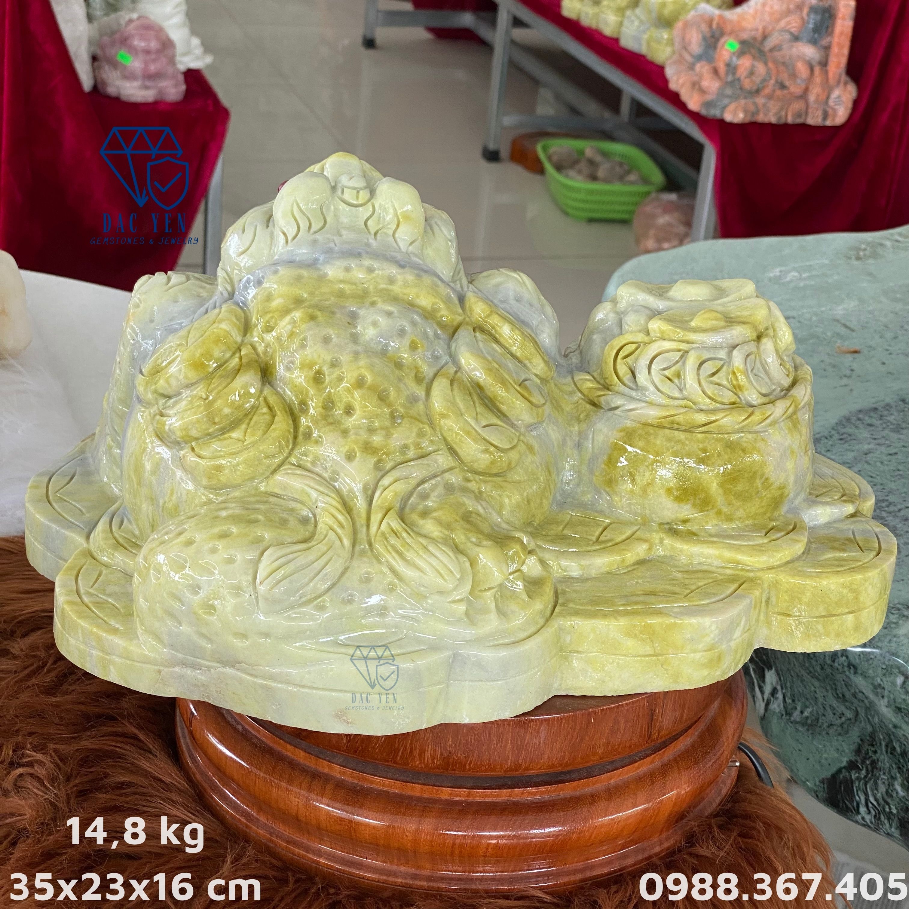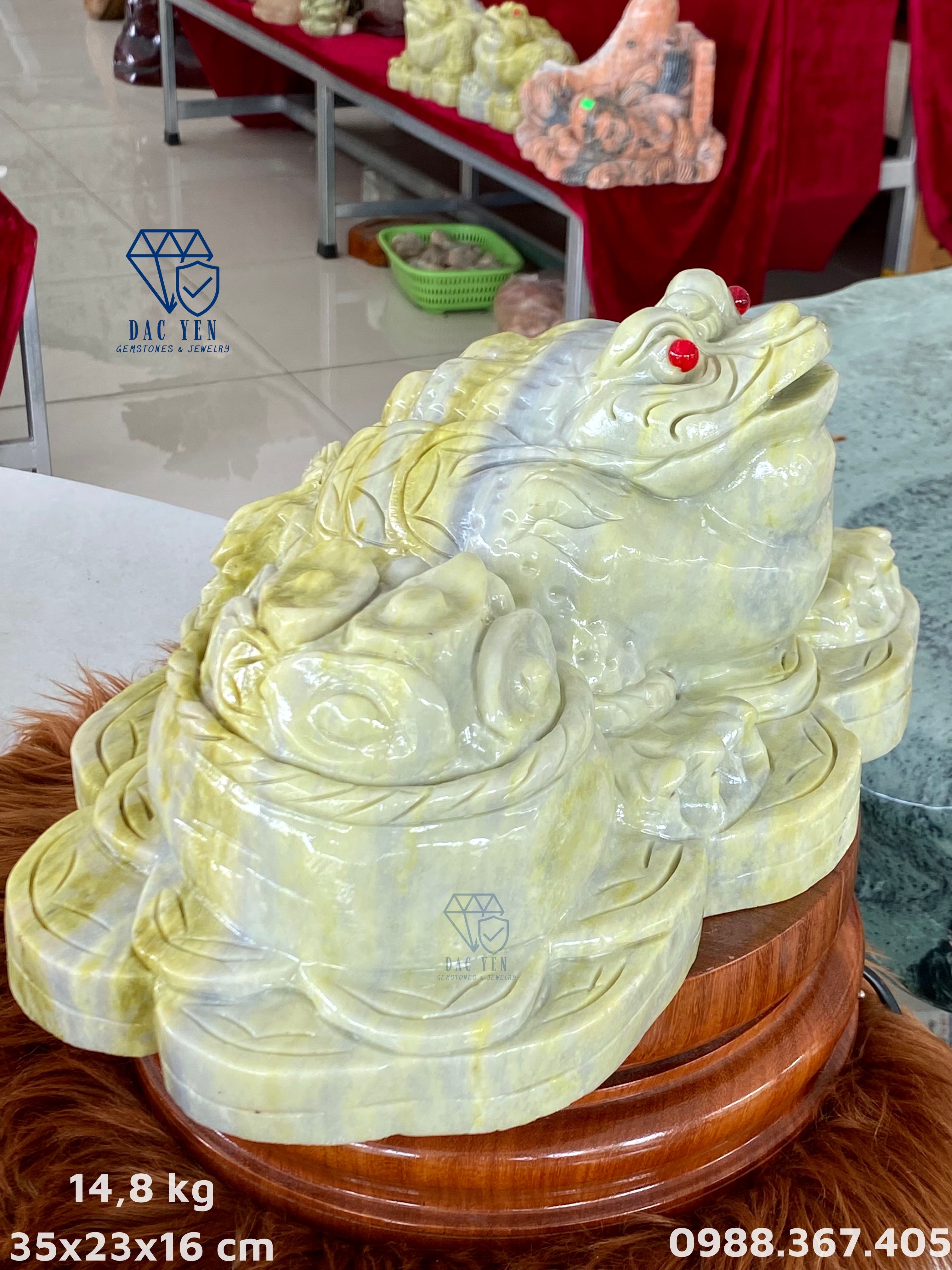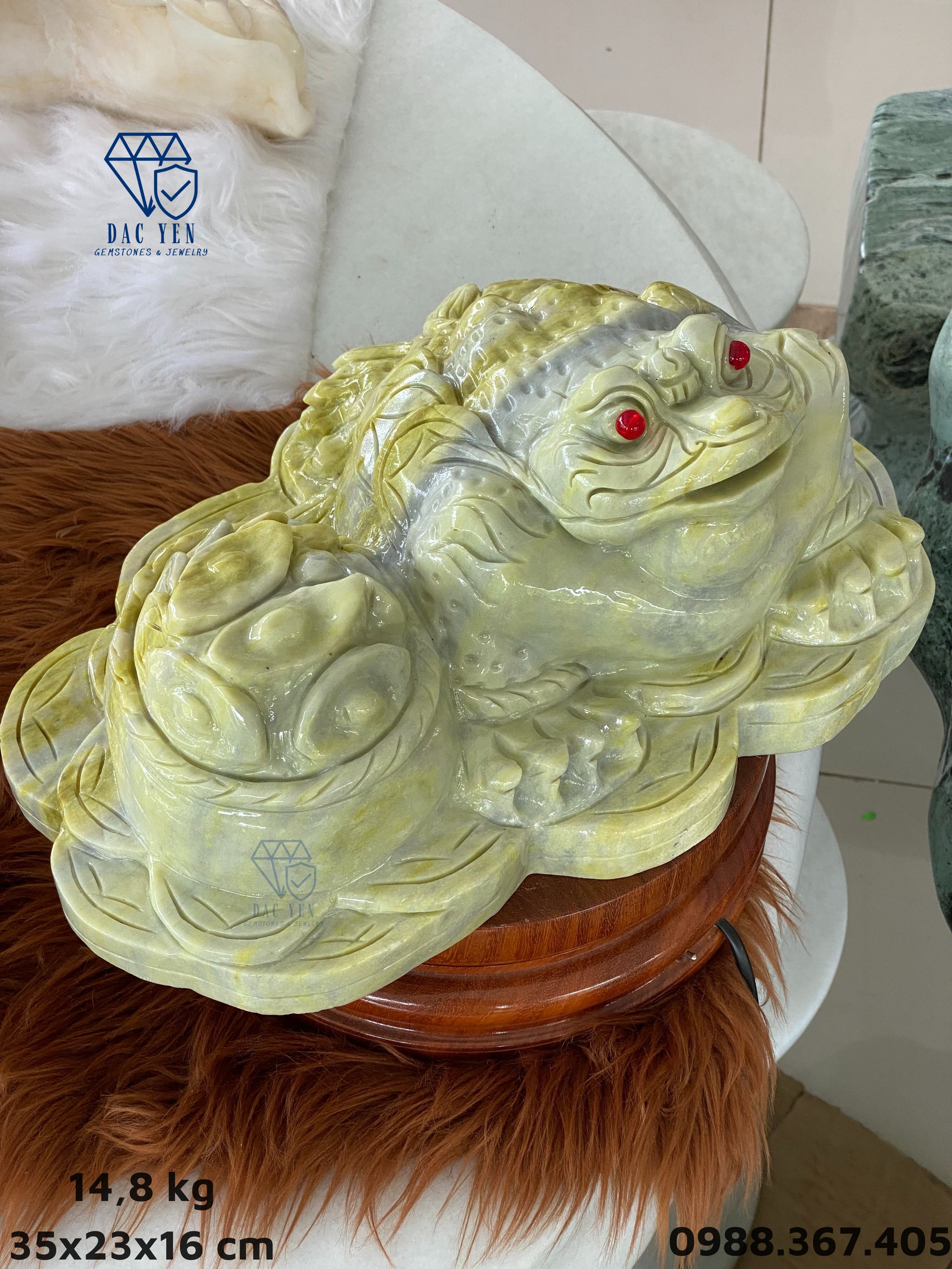 Cóc thiềm thừ từ đá ngọc serpentine xanh tự nhiên nặng 14,8 kg