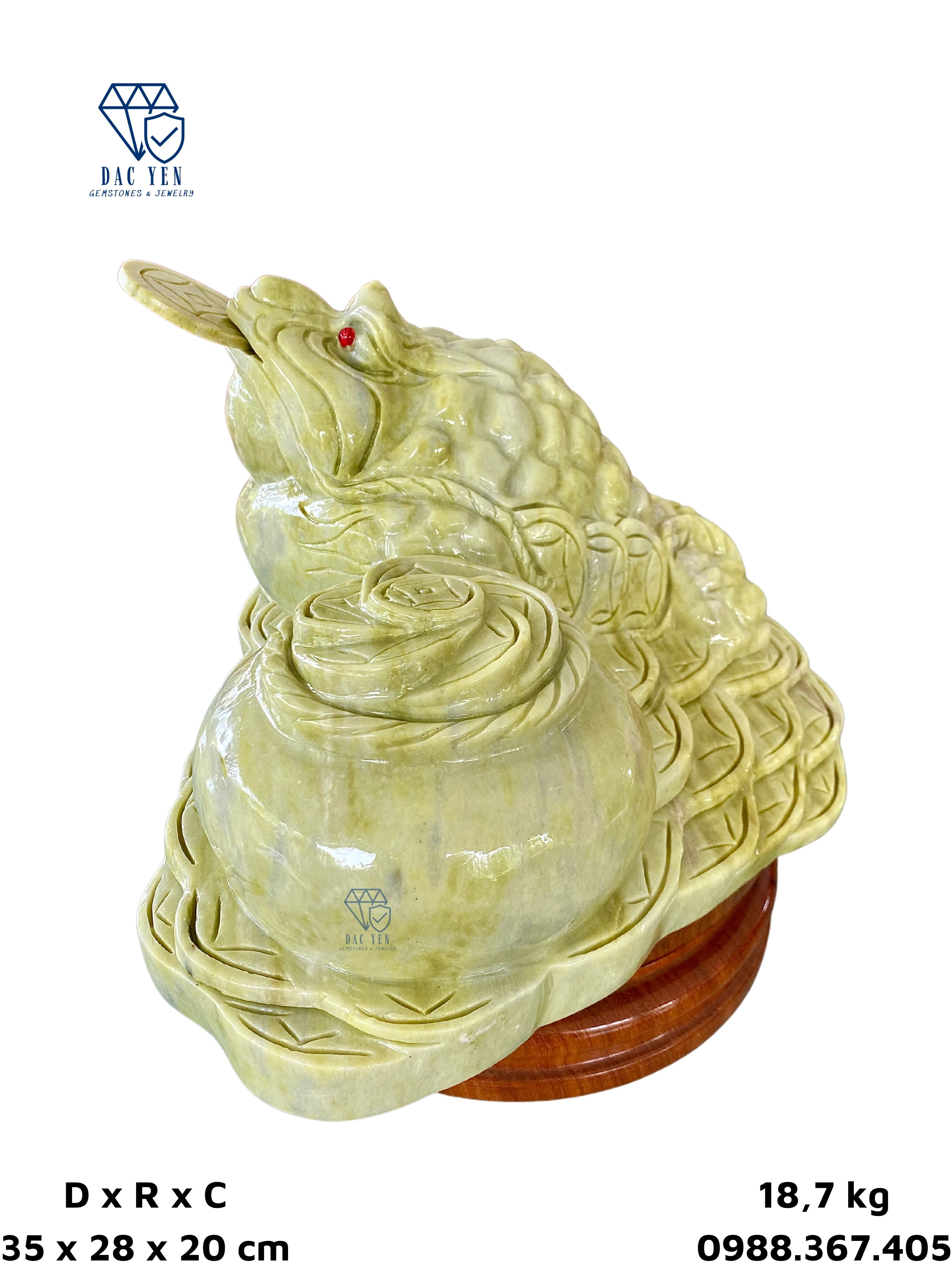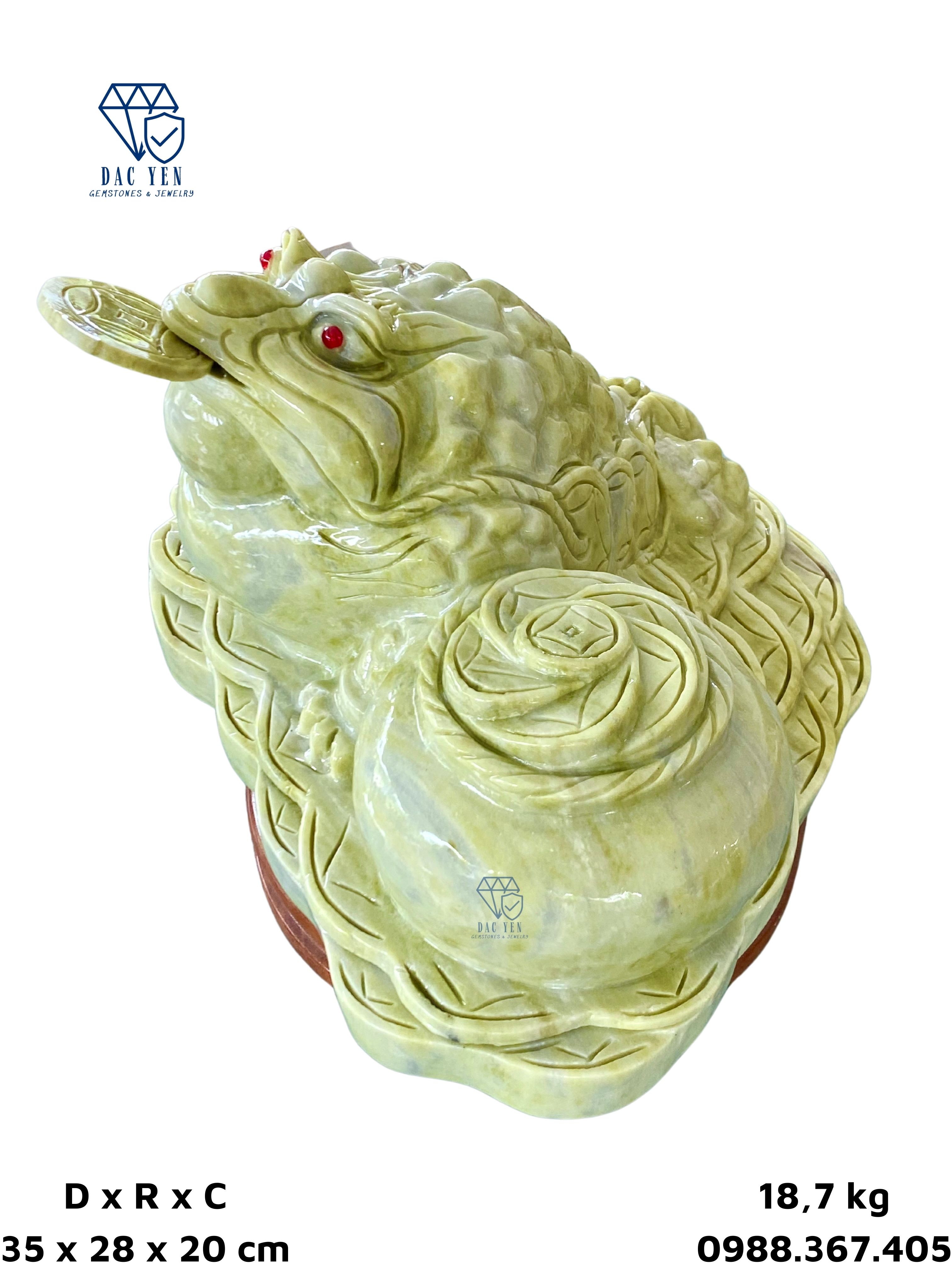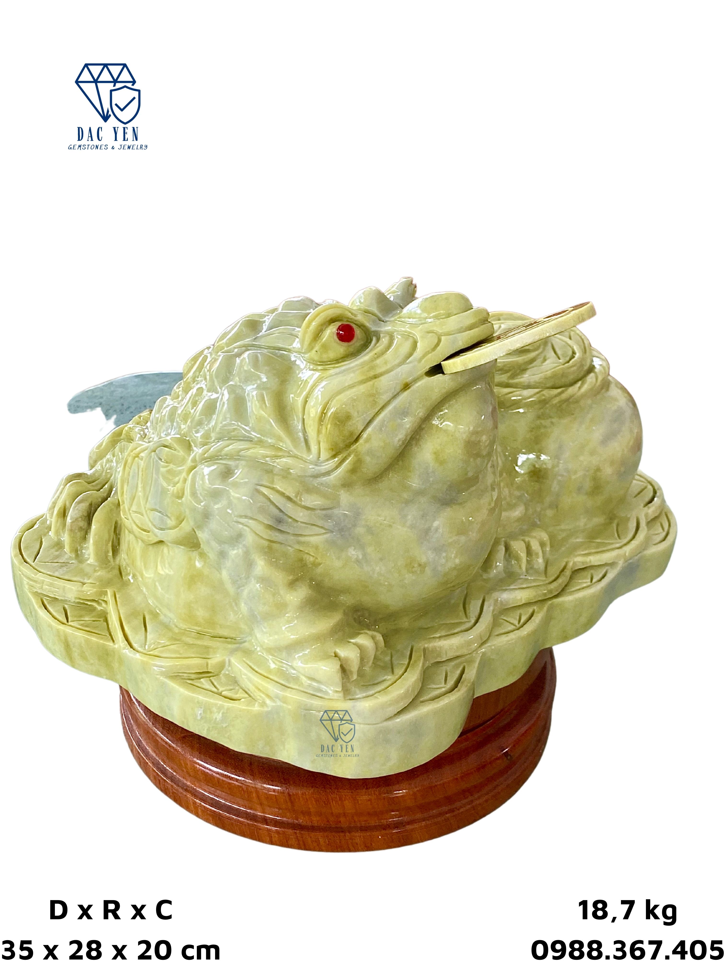 Cóc thiềm thừ được chế tác tại xưởng chế tác đá Yên Bái có chất liệu từ Ngọc Serpentine. Serpentine thường thấy nhất có màu xanh lục, nhưng đôi khi nó cũng có thể thay đổi từ từ nâu sang đen và từ trắng, vàng đến xám.