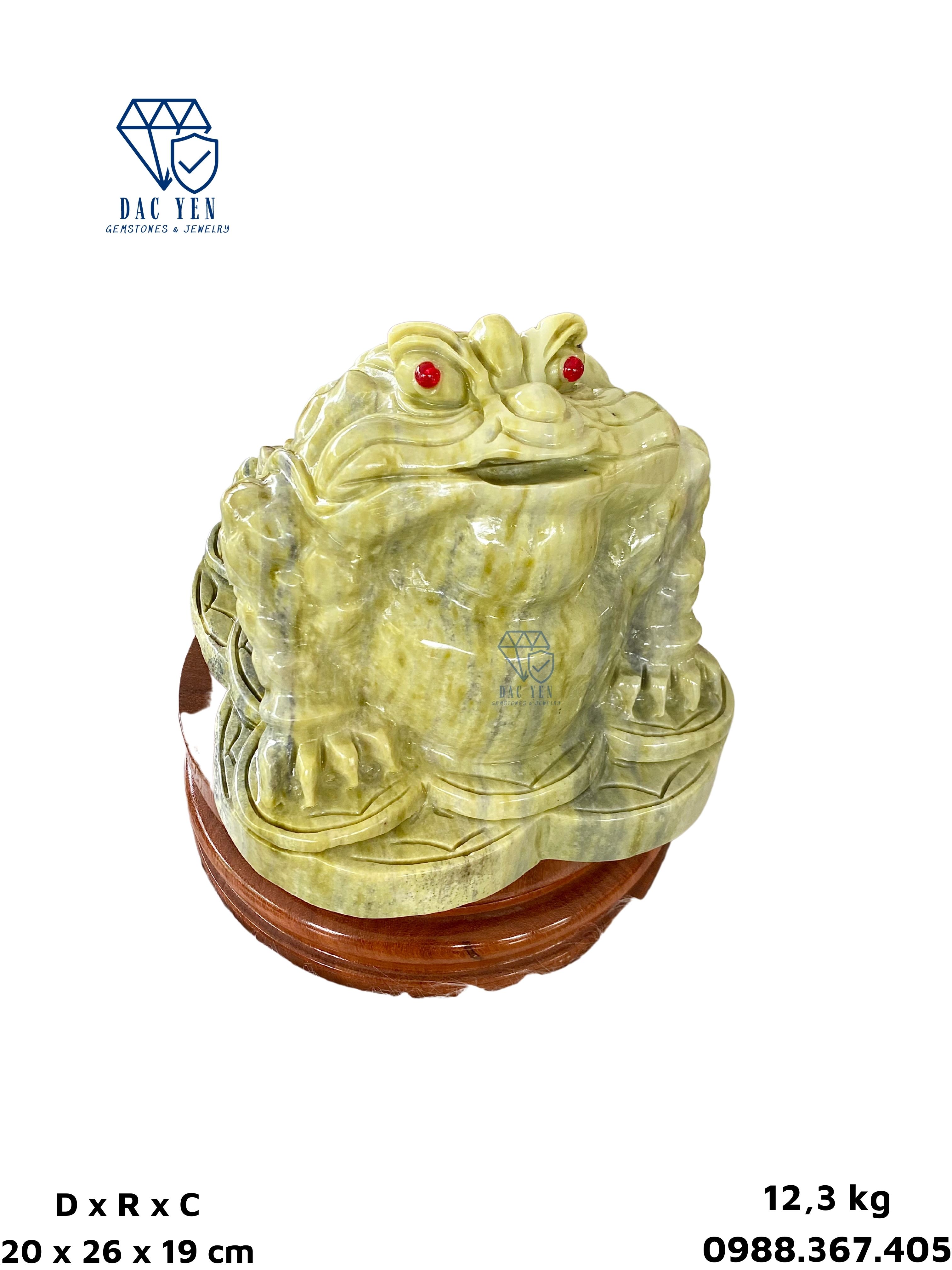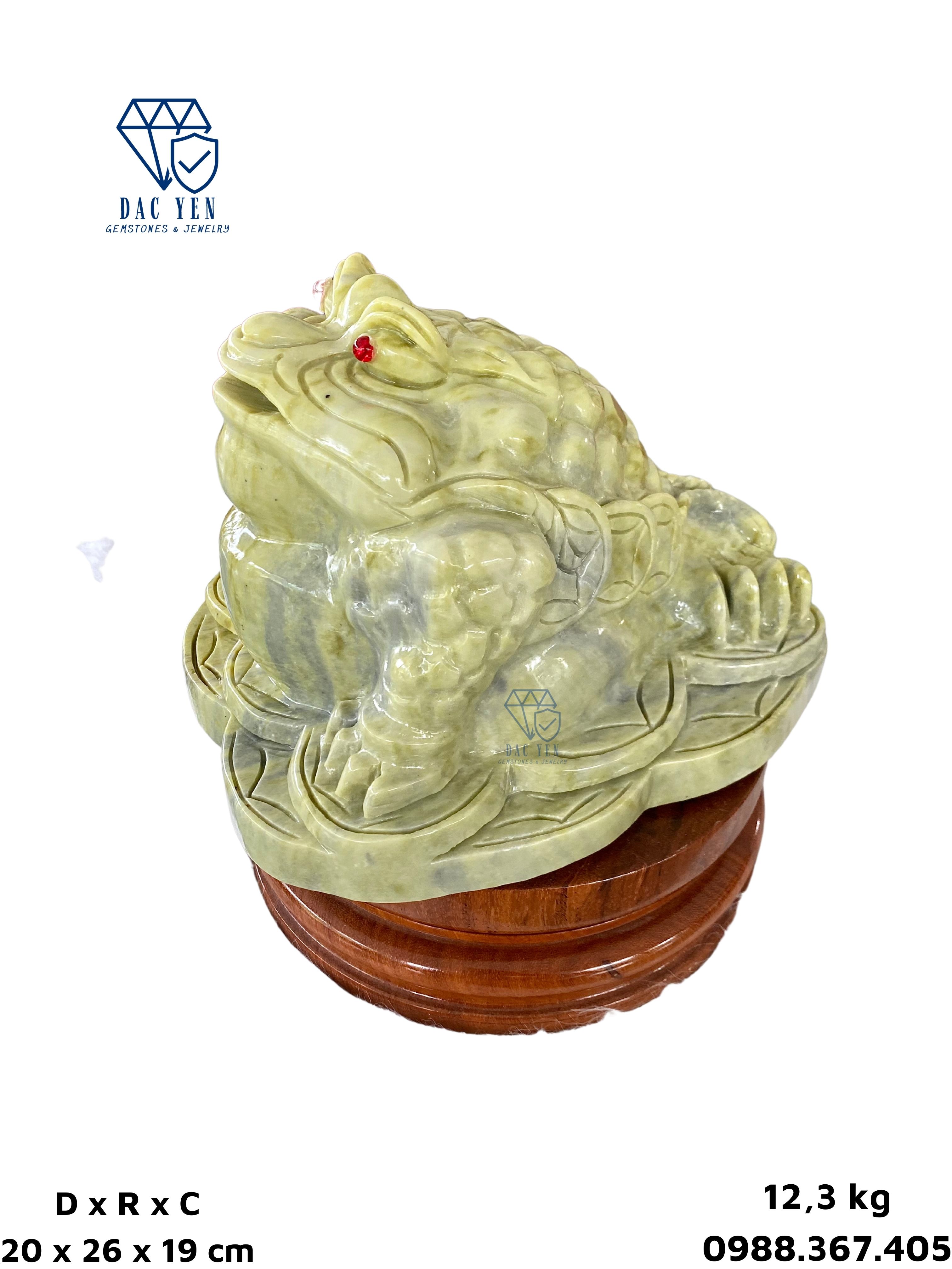 Cóc thiềm thừ được chế tác tại xưởng chế tác đá Yên Bái có chất liệu từ Ngọc Serpentine. Serpentine thường thấy nhất có màu xanh lục, nhưng đôi khi nó cũng có thể thay đổi từ từ nâu sang đen và từ trắng, vàng đến xám.